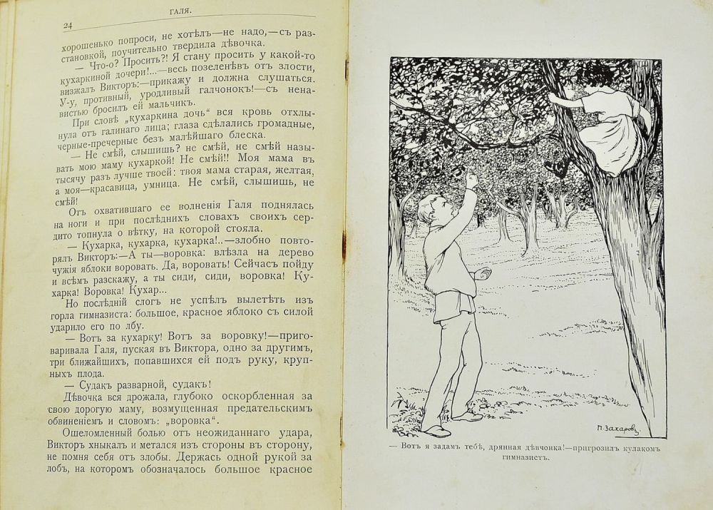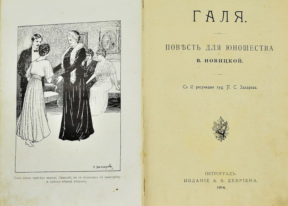 Повесть для юношества. С 12 рисунками худ. П.С. Захарова. Петроград, Издание А.Ф. Девриена, 1914. – [2], 243 с., [12] л. ил.