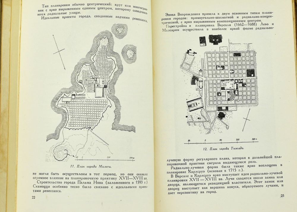Кроме этого, автор детально рассматривают применяющиеся в различных случаях градостроительные и архитектурные приемы, отдельно приводя планы застроек других мировых столиц: Вашингтона, Парижа — Версаля, сравнительно описывая города периода Возрождения и многое-многое другое.