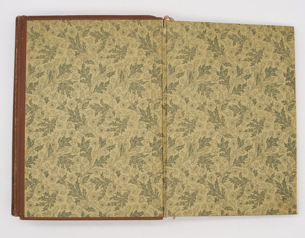 Переплет — художественный, картон, коленкор, корешок — плоский, того же материала; форзацы — цветная бумага с рисунком; обрез — “под мрамор”; имеется ляссе.