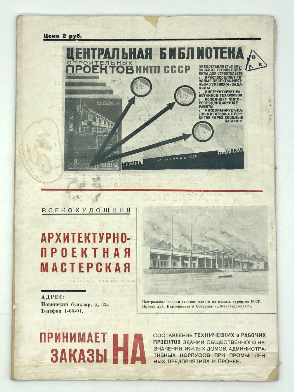 Ежемесячный архитектурно-строительный журнал московского совета Р и КД. Издание МОССОВЕТА. Москва, 39-я типография “Мособлполиграфа”, 1935.
