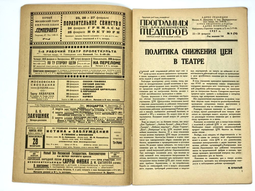 Еженедельный театральный журнал. Москва, Тип. “Красный Пролетарий”, 1927.