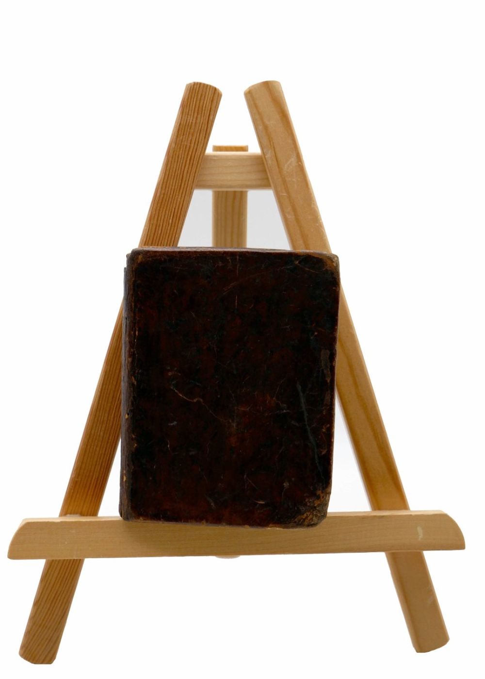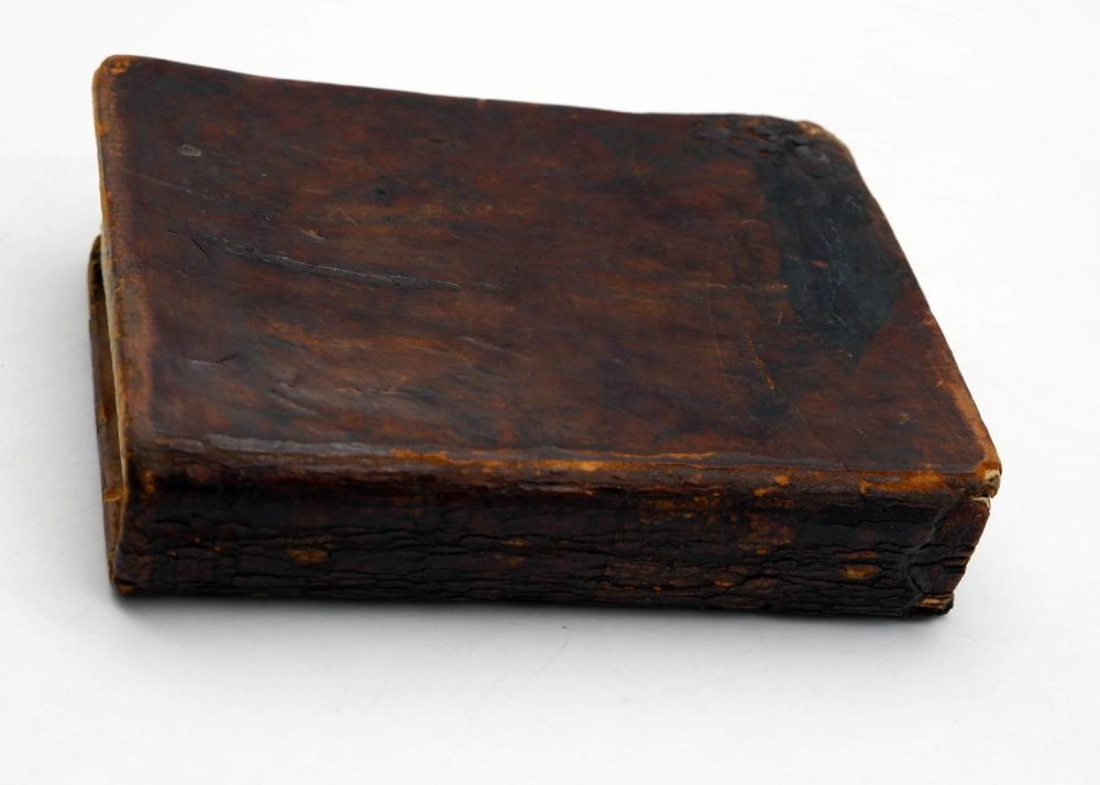Переплет – кожа, эпохи начала 19 века, корешок- плоский, того же материала, на корешке имеются следы доп. наклейки.