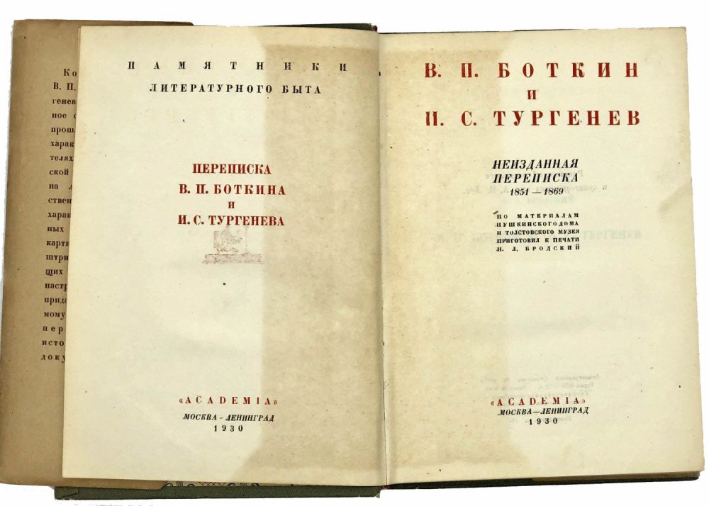 Эпистолярный жанр способен совершенно по-новому раскрыть образ писателя как для специалистов, так и для каждого заинтересованного читателя. Представленная переписка Василия Петровича Боткина (1810-1869) и Ивана Сергеевича Тургенева (1818-1883) охватывает 1851-1869 г. и являет собой редкие свидетельства не только о двух уникальных личностях, но и представляет “выдающийся интерес по обилию данных, рисующих литературную и общественную жизнь 50-60 гг. прошлого века в своеобразном преломлении, вытекающем из классовой психоидеологии обоих писателей”. В переписках, разумеется, раскрываются образы и других выдающихся деятелей эпохи — писателей, артистов, государственных деятелей, художников и проч.