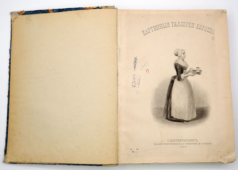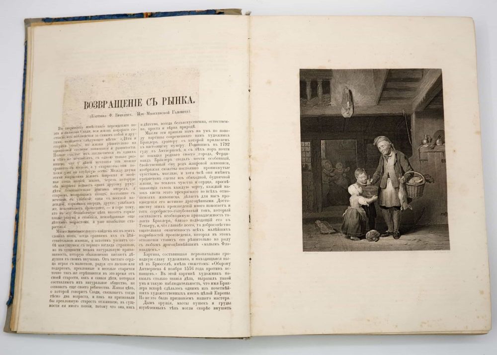 СПб.: М.О. Вольф, 1862-1864. Т. 1. — 1862. — [4], XVI, 239 с.: ил.; 48 л. ил.; 1 грав. тит. л.; Т. 2. — 1863. — [4], XX, 252 с. ил.; 48 л. ил.; 1 грав. тит. л.; Т. 3. — 1864. — [4], 266 с.: ил.; 1 грав. тит. л., 47 из 48 л. ил.; 29,5х22 см. Утрата 1 л. ил. (Бергем "Пейзаж с фигурами"; Т. 3). Грав. титул. Т. 2 и Т. 3: 1871. Три тома в составных единообразных (библ.) переплётах середины ХХ века.
