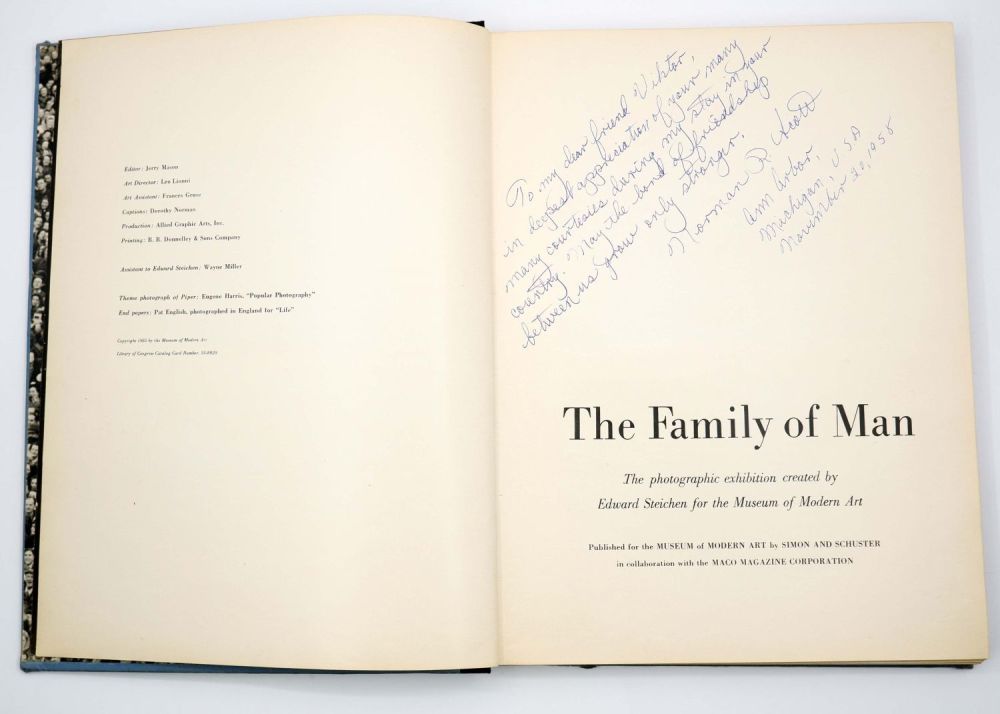 Уникальный каталог выставки, впервые показанной в 1955 году в Нью-Йорке во всемирно известном Музее Современного Искусства (MoMA). На выставке было представлено 503 отпечатка из 68 стран, которые представляли 273 фотографа. Снимки были отобраны из почти двух миллионов работ как знаменитых, так и неизвестных ранее фотографов. Снимки отображают самые знаменательные моменты человеческой жизни, как радостные (рождение, любовь, детство), так и трагичные (война, смерть, болезни, лишения). Целью Стайхена было продемонстрировать универсальный характер человеческого опыта и роли фотографии в его документации. В снимках, представленных на выставке, акцент был сделан на общности, которая связывает людей и культуры по всему миру, а сама экспозиция стала символом гуманизма в первое десятилетие после Второй мировой войны.