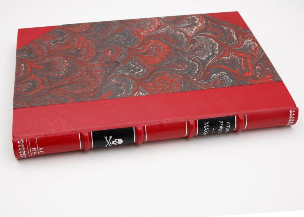 Переплет – картон, мраморная бумага; корешок – кожа, разделен бинтами на 5 сегментов; форзацы – традиционные; обрез – традиционный.