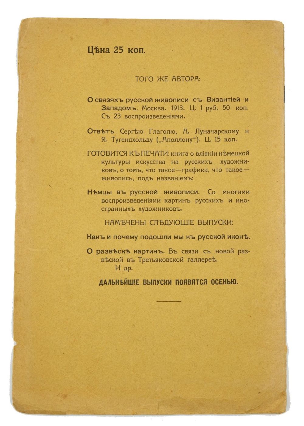 Вып. 1. Ответ Сергею Глаголю, А. Луначарскому и Я. Тугендхольду («Аполлону»). 1915. – 16 с.