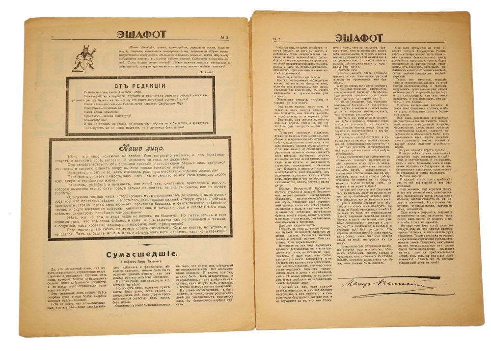 В выпусках памфлеты В.И. Немировича-Данченко, А. Куприна, А. Аверченко и др.