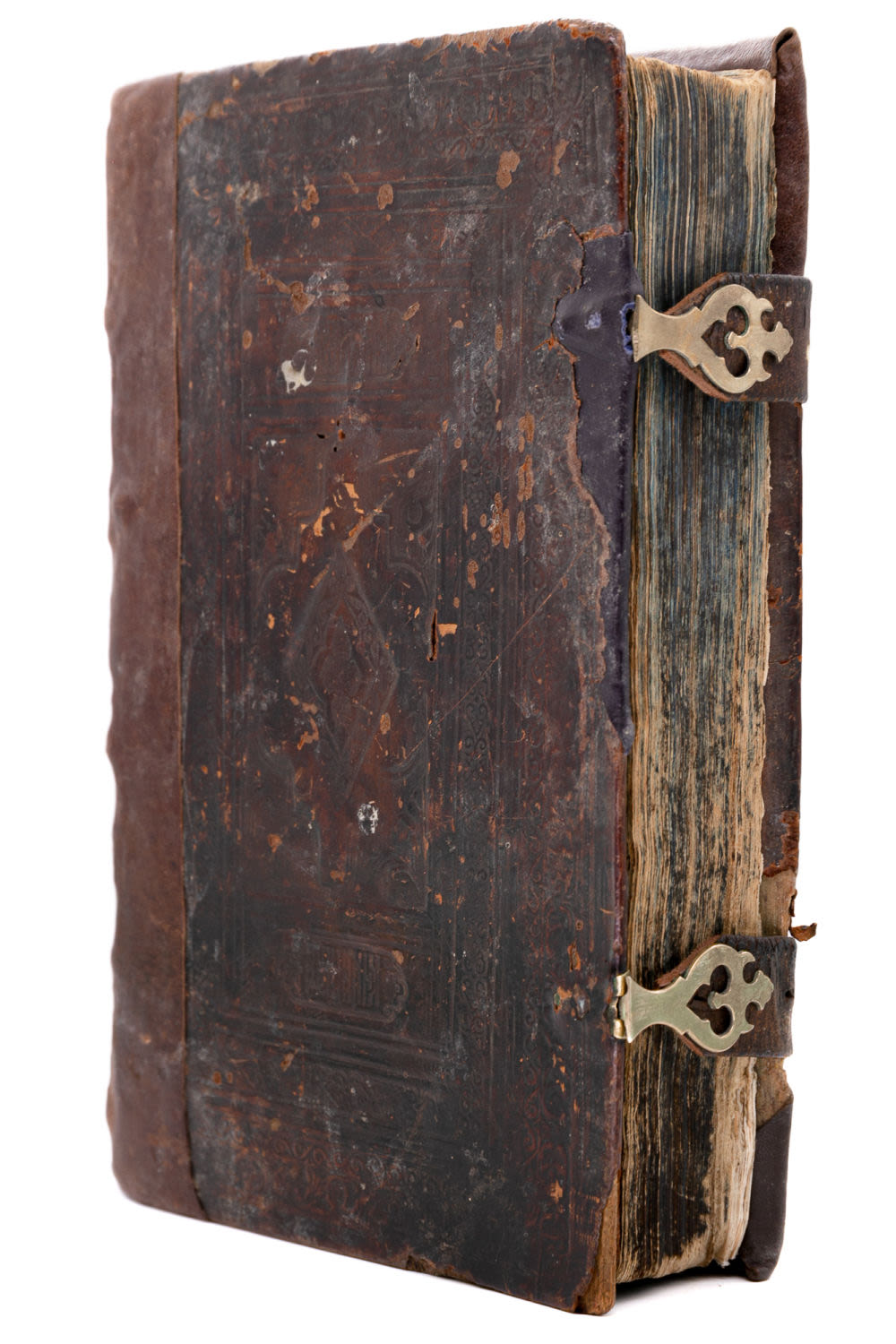 Переплет – эпохи; доски, кожа с блинтовым тиснением, застежки новые.