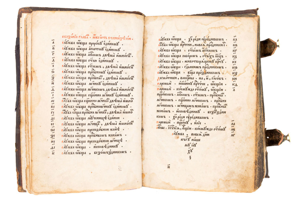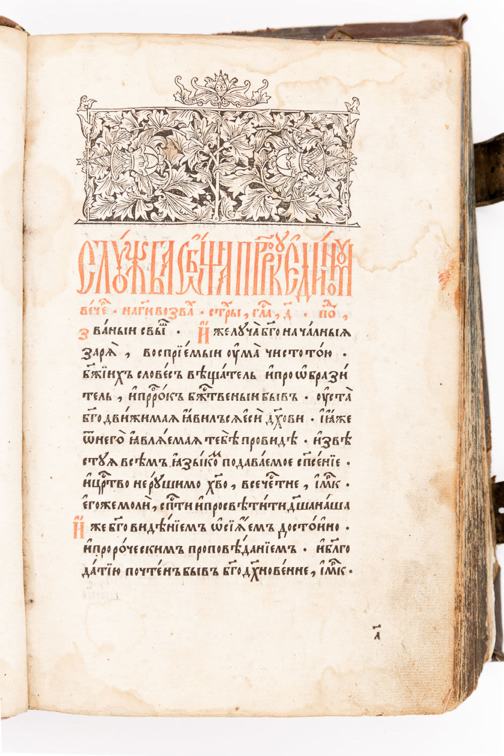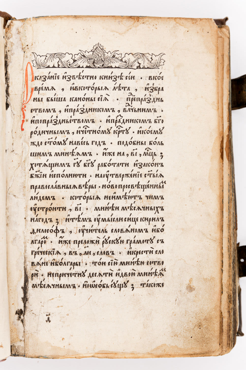 Крайне редкий экземпляр Общей Минеи. Второе издание от 19.VIII.1600. Первое – от 29.VI.1600. В отличие от первого издания, напечатана в пол-листа. На бумаге с водяным знаком «кувшин».