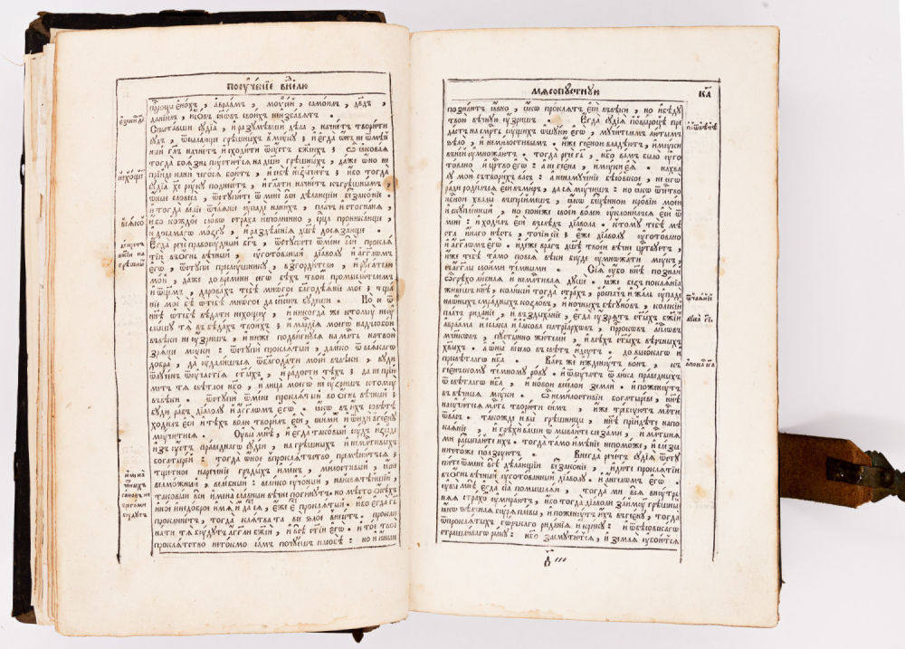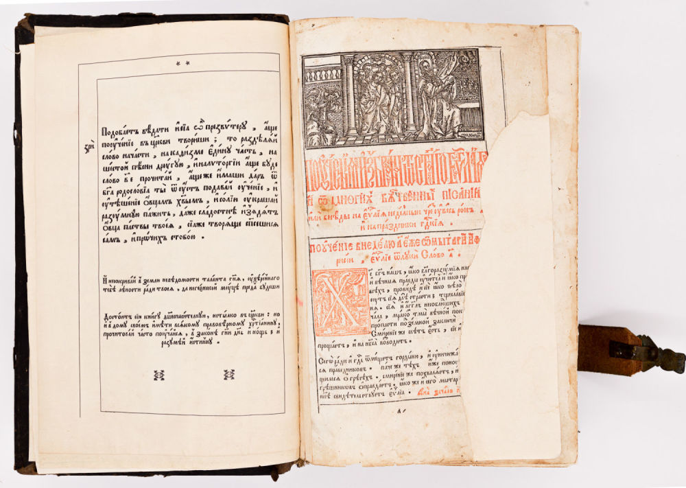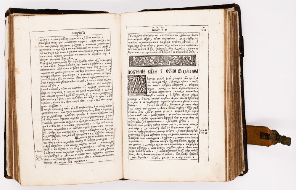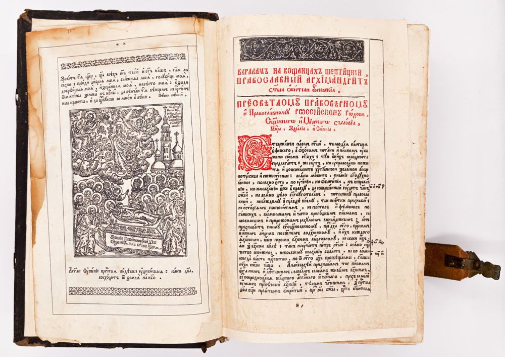 На аукционе представлен экземпляр второго, униатского переиздания Евангелия, опубликованный при поддержке Львовского епископа Иосифа (Шумлянского) в типографии Уневского монастыря в 1696 году.