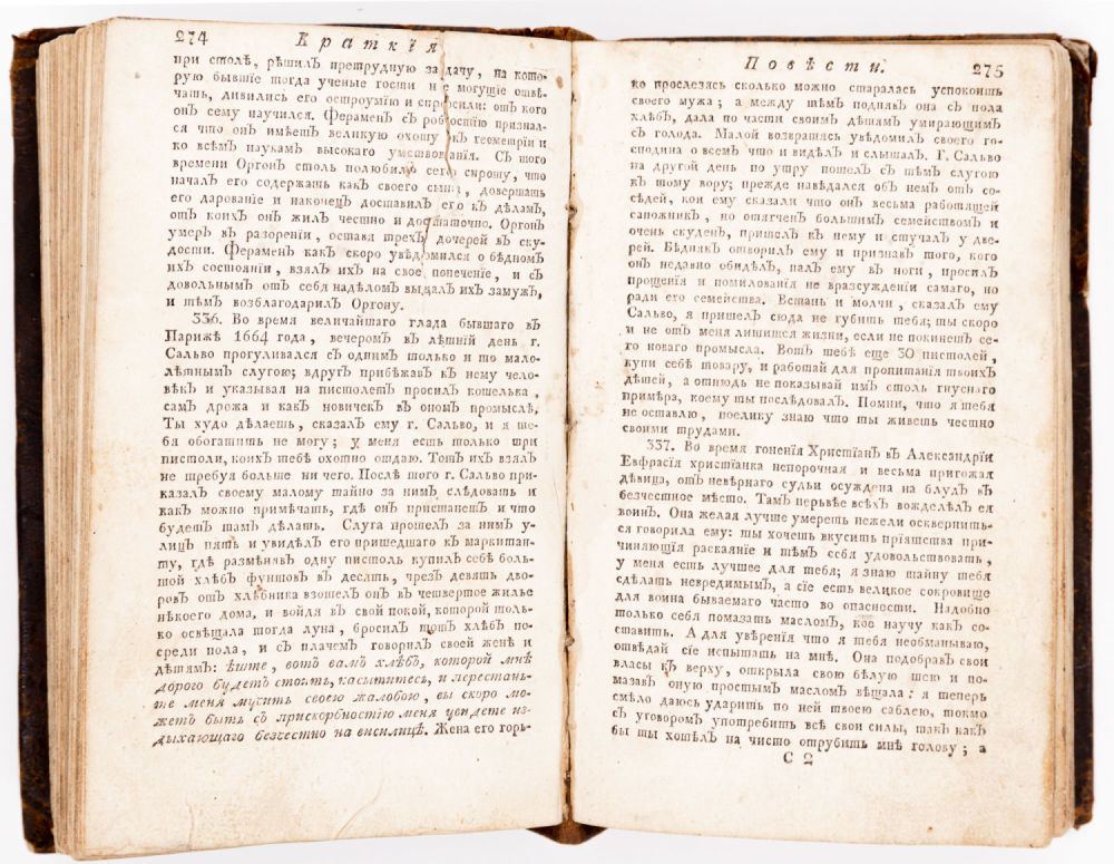 Сохранность – хорошая, потертости переплета, утраты фрагментов кожи, часть текста С. 295 восстановлена от руки, загрязнения в блоке.