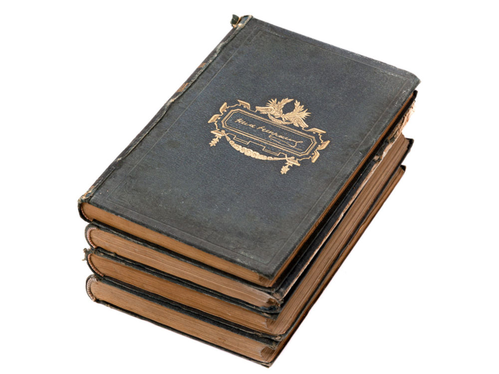 Сохранность – хорошая, потертости переплетов, надрывы по краям корешков, утрата фрагментов коленкора верхней крышки переплета (Т. 3), следы влаги по краю блока (Т. №).