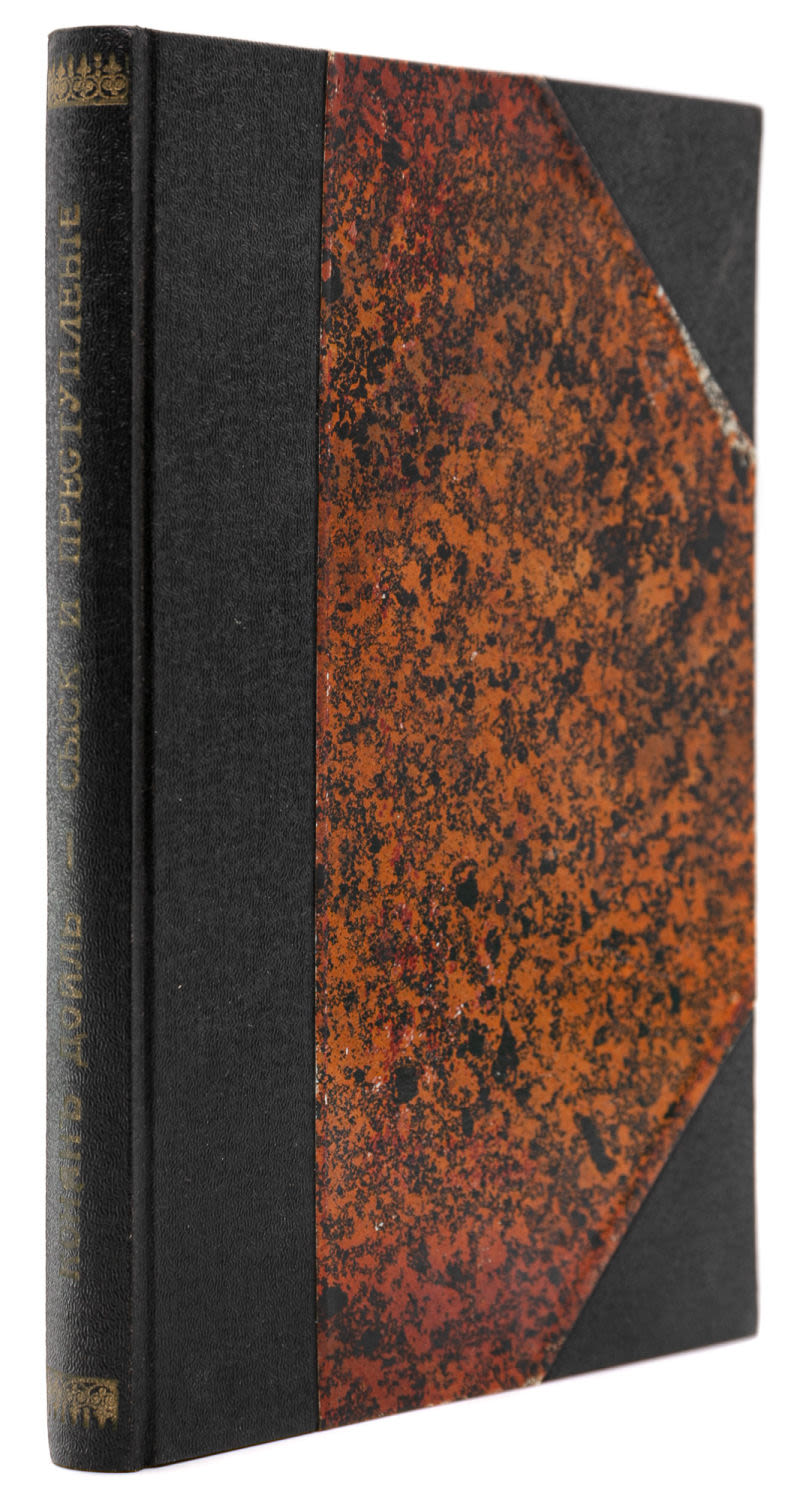 Переплёт – владельческий, крышки-картон, уголки и корешок – ледерин; тиснение золотом на корешке, ляссе.
