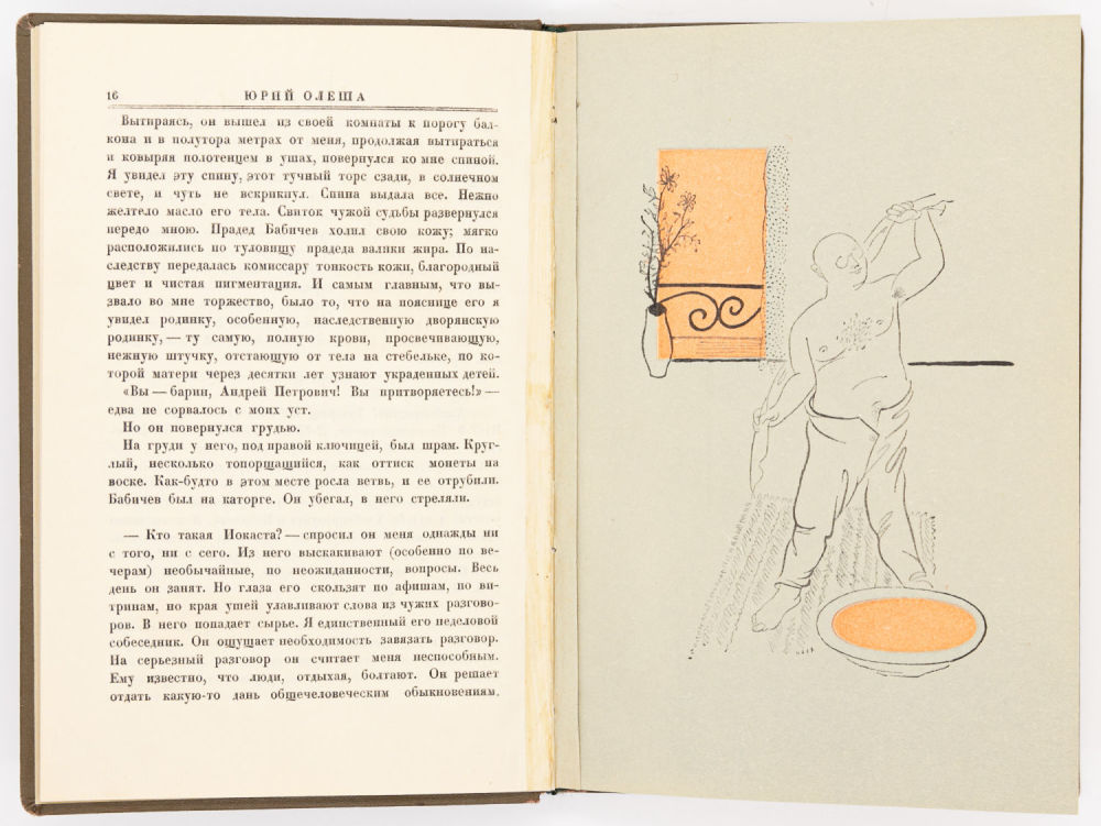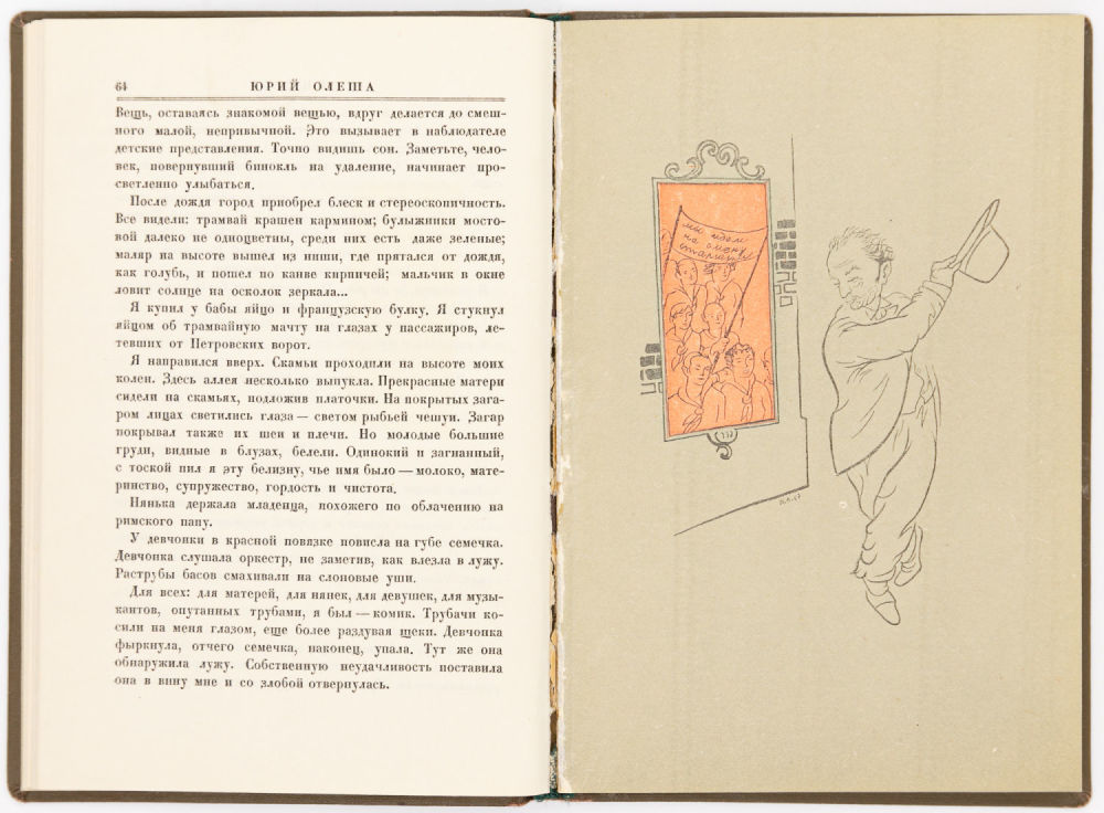 Главный герой, молодой неудачник Николай Кавалеров, после скандала в пивной попадает в дом к человеку «новой формации», директору треста. Эстетика интеллигента, по сути «лишнего человека», противопоставлена прагматизму и расчетливости. Представленное издание 1928 года – одна из первых публикаций прозы Юрия Карловича Олеши.