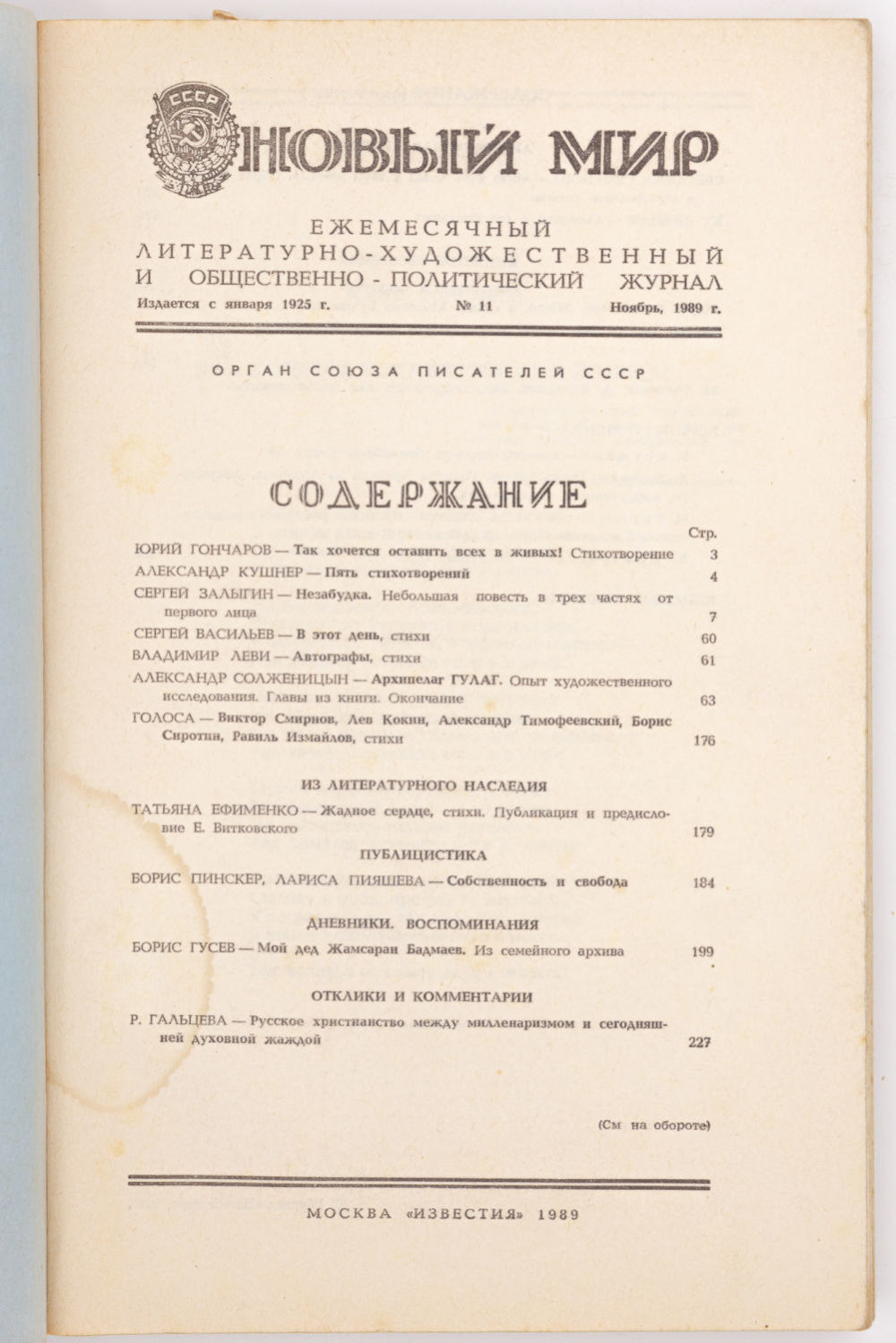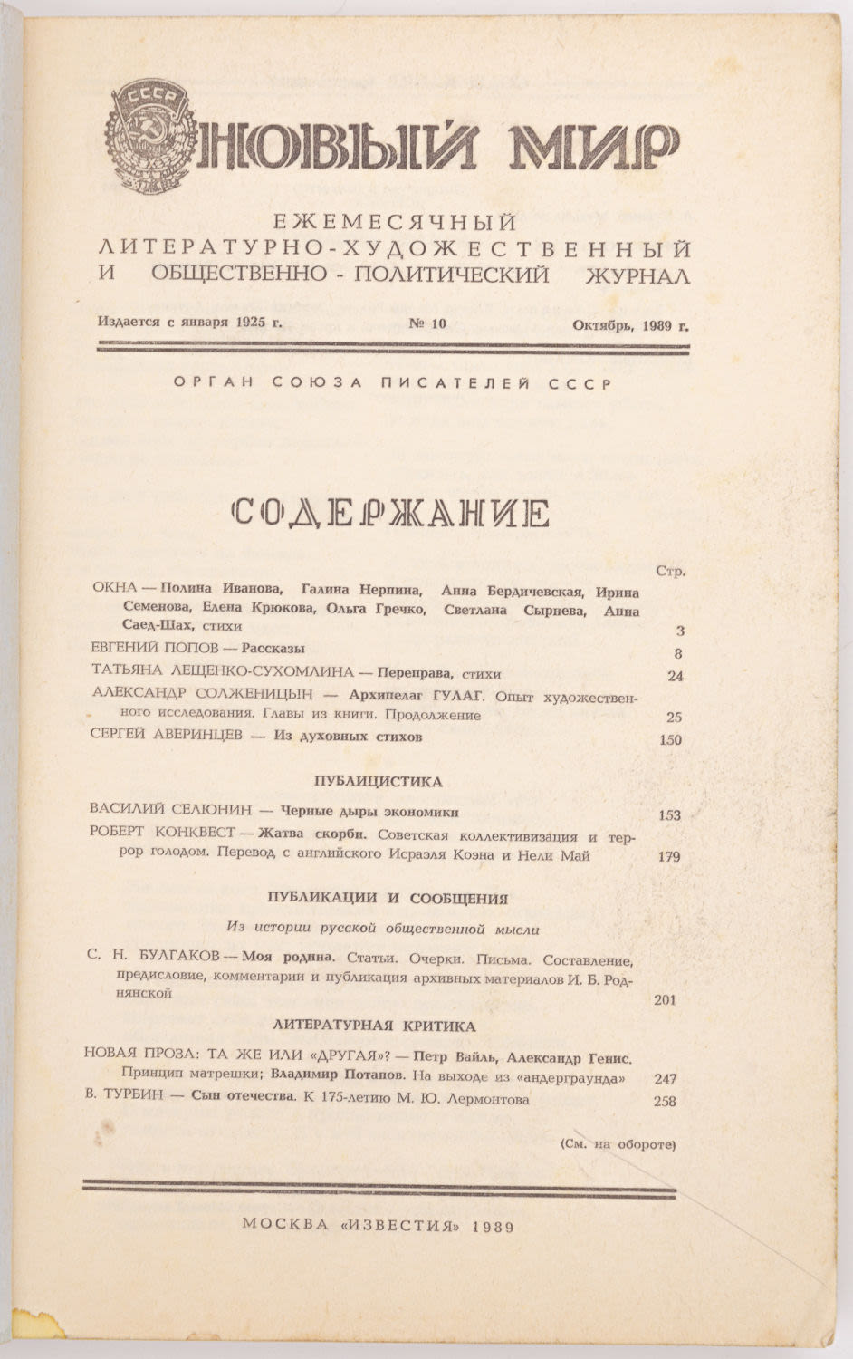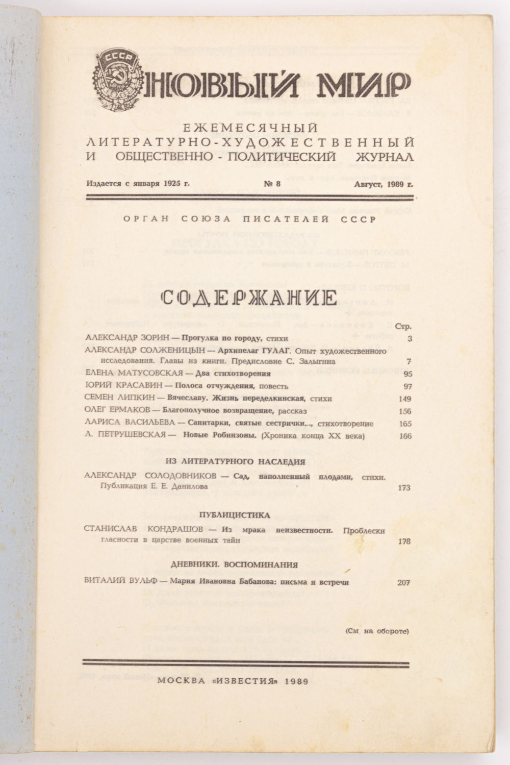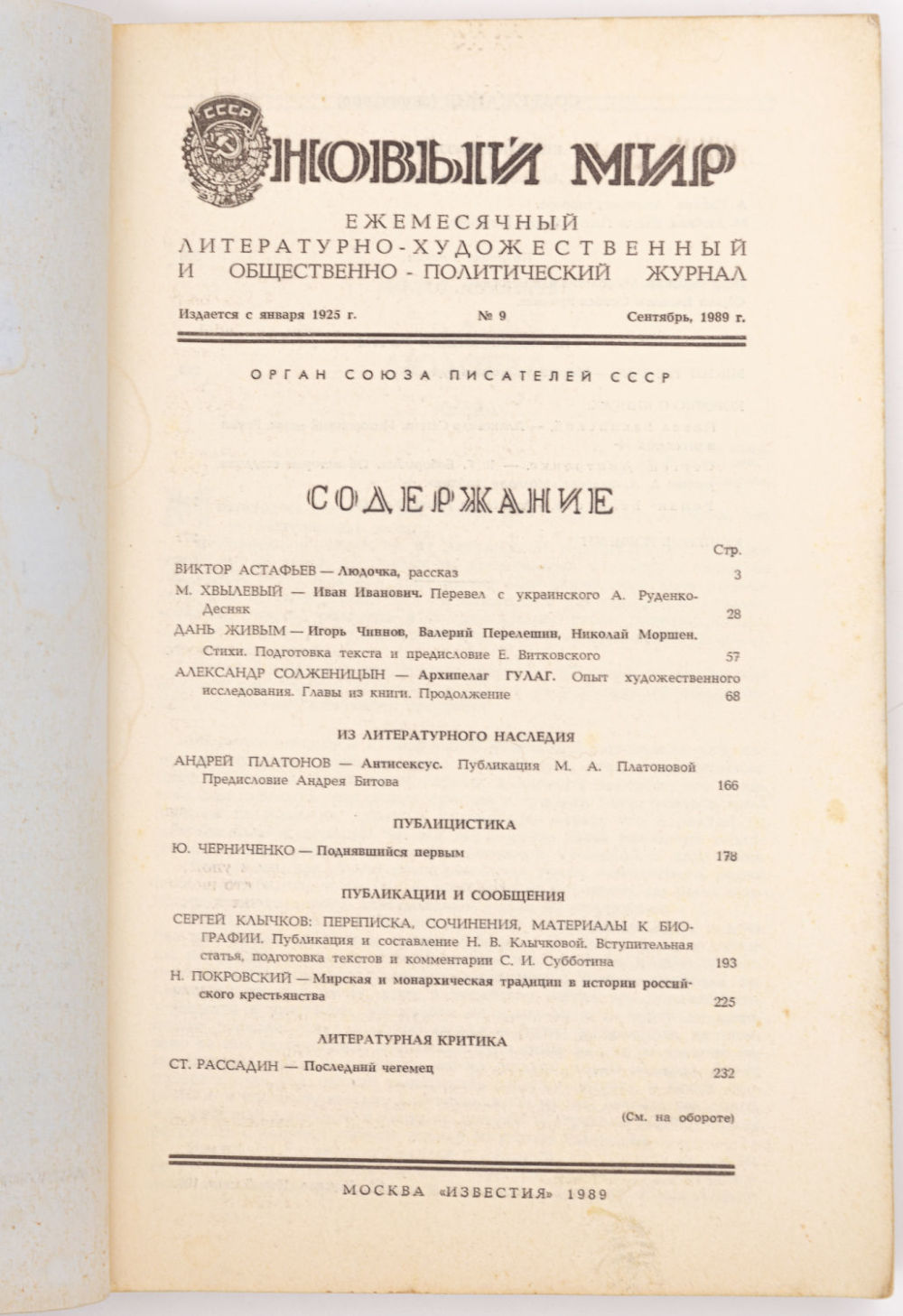 №8-11: Первая публикация романа А. Солженицына «Архипелаг Гулаг».