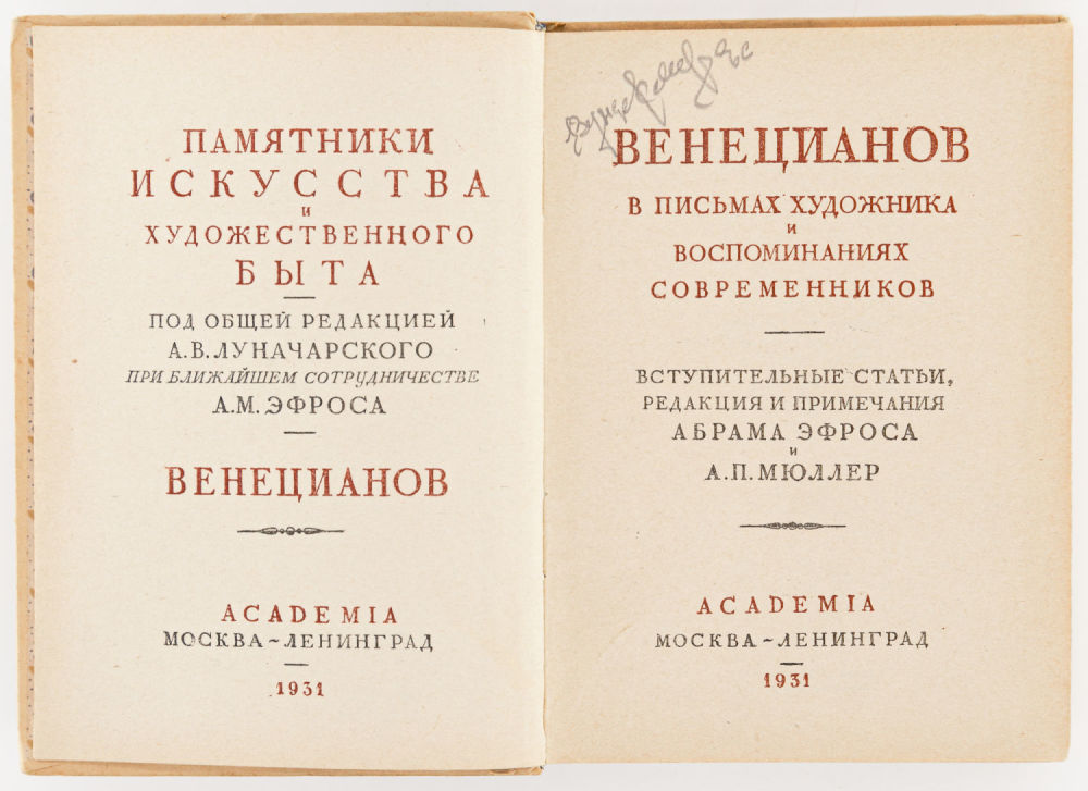 Вступ. статьи, ред. и прим. Абрама Эфроса и А. И. Мюллер. Л.; М.: Academia, 1931. — 312 с., [1] л. фронт. (порт.), [16] л.: ил.; 17х13 см.