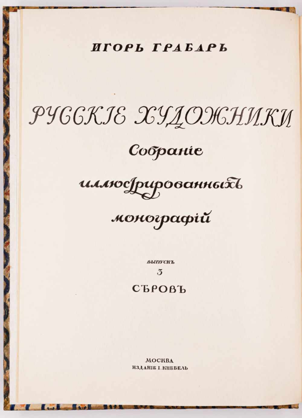 Вып. 3: Грабарь И. Валентин Александрович Серов: Жизнь и творчество. – [1914]. – 299, [1] с.: ил., [1] л. фронт. (порт.), [22] л. ил.; 30х23,5 см.