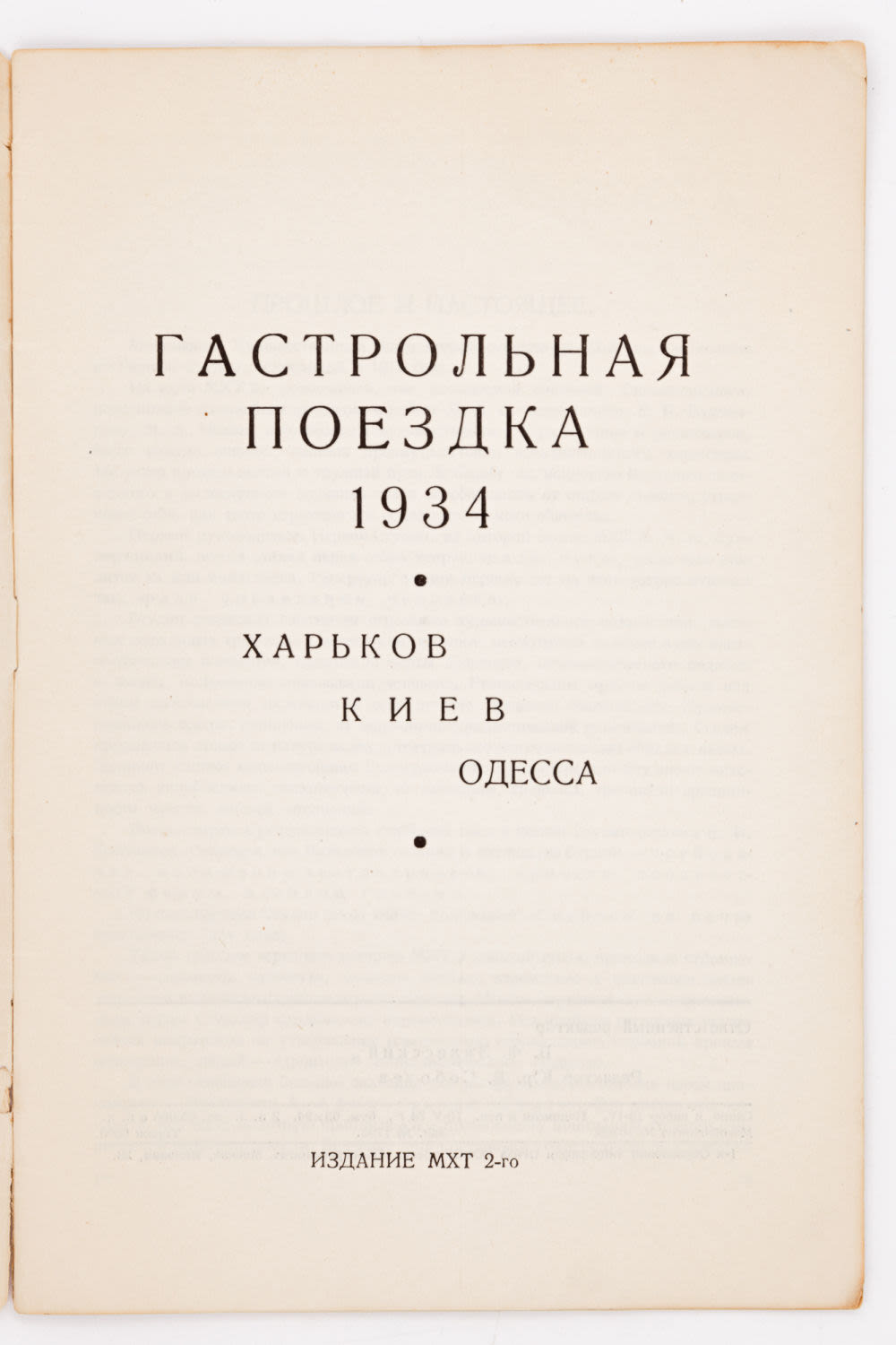 2) Гастрольная поездка 1934: Харьков, Киев, Одесса. М.: 1-я обр. тип. Огиза РСФСР «Полиграфкнига», 1934. – 31, [1] с.: ил.; 22,5х15 см;