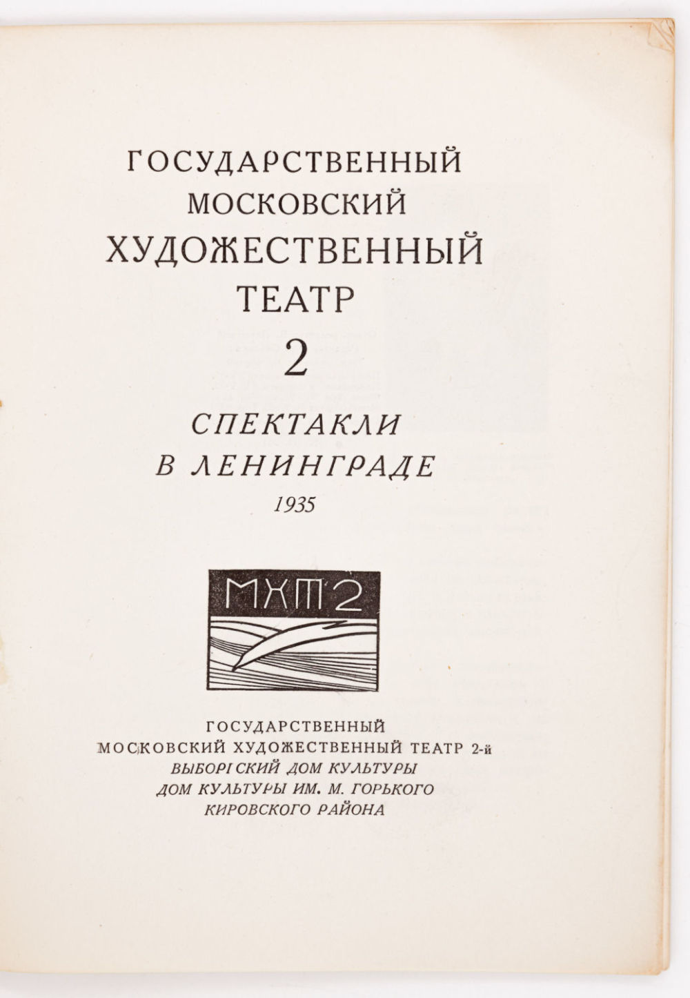 1) Государственный Московский Художественный театр 2: Спектакли в Ленинграде. [М.]: Тип. им. Воровского, 1935. – 63, [1] с.: ил.; 20,5х15 см;