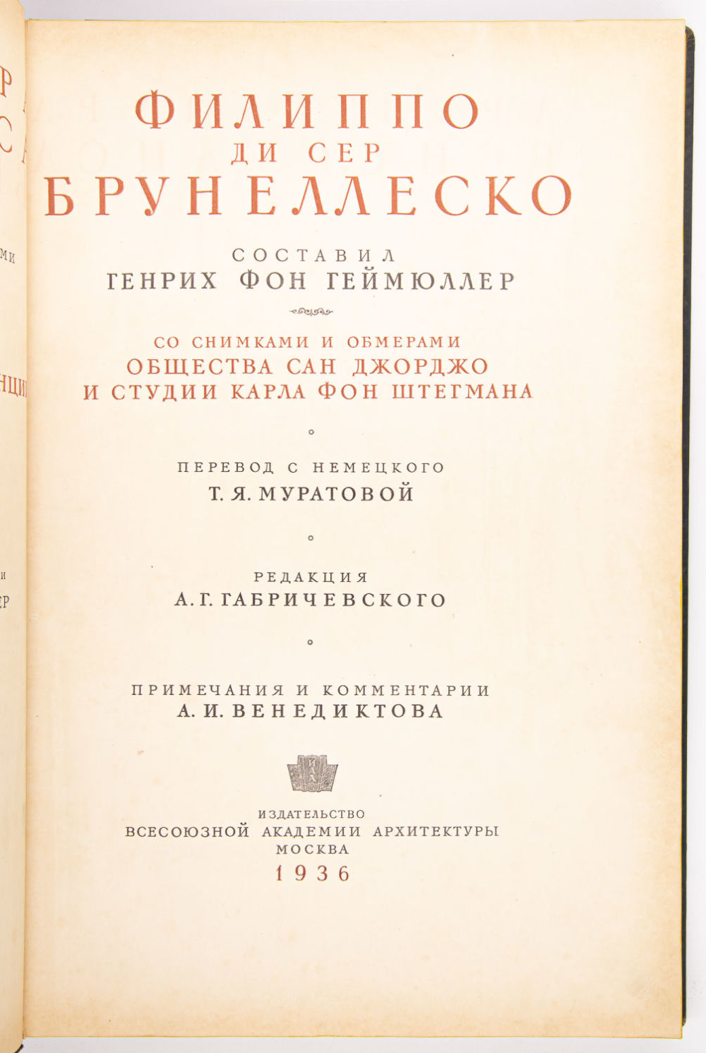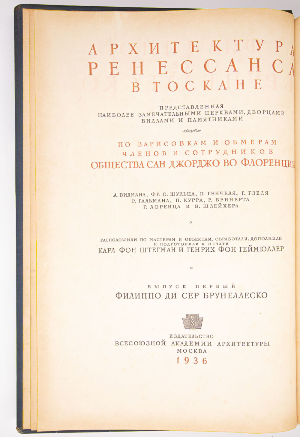 Вып. I: Филиппо ди Сер Брунеллеско. 1936. – 88 с.: ил., [39] л. ил.;