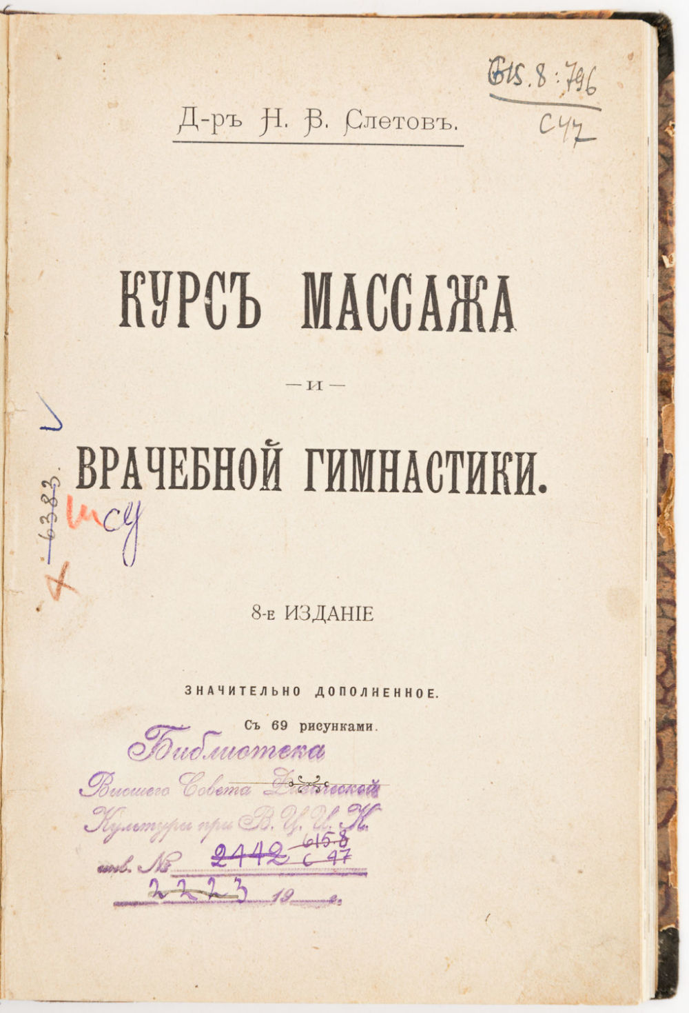 Автор книги Слетов Николай Викторович (1863-1930) – врач, массажист, специалист по мануальной терапии.