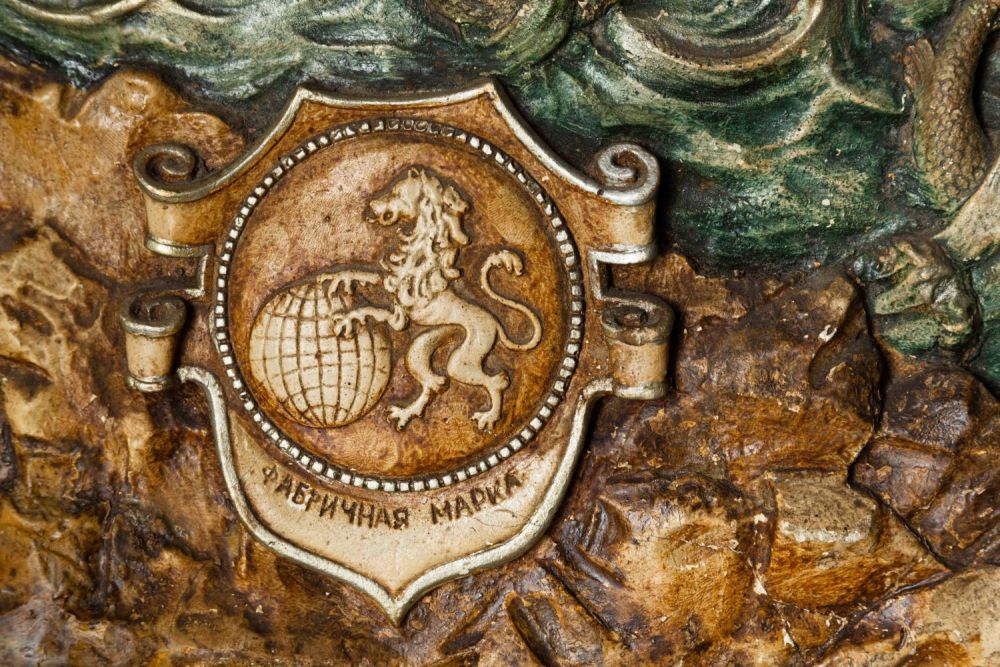 Российская империя. Гипс, отливка по форме, полихромная роспись. Состояние: многочисленные осыпи гипса. Размеры: 53,5х70 см.