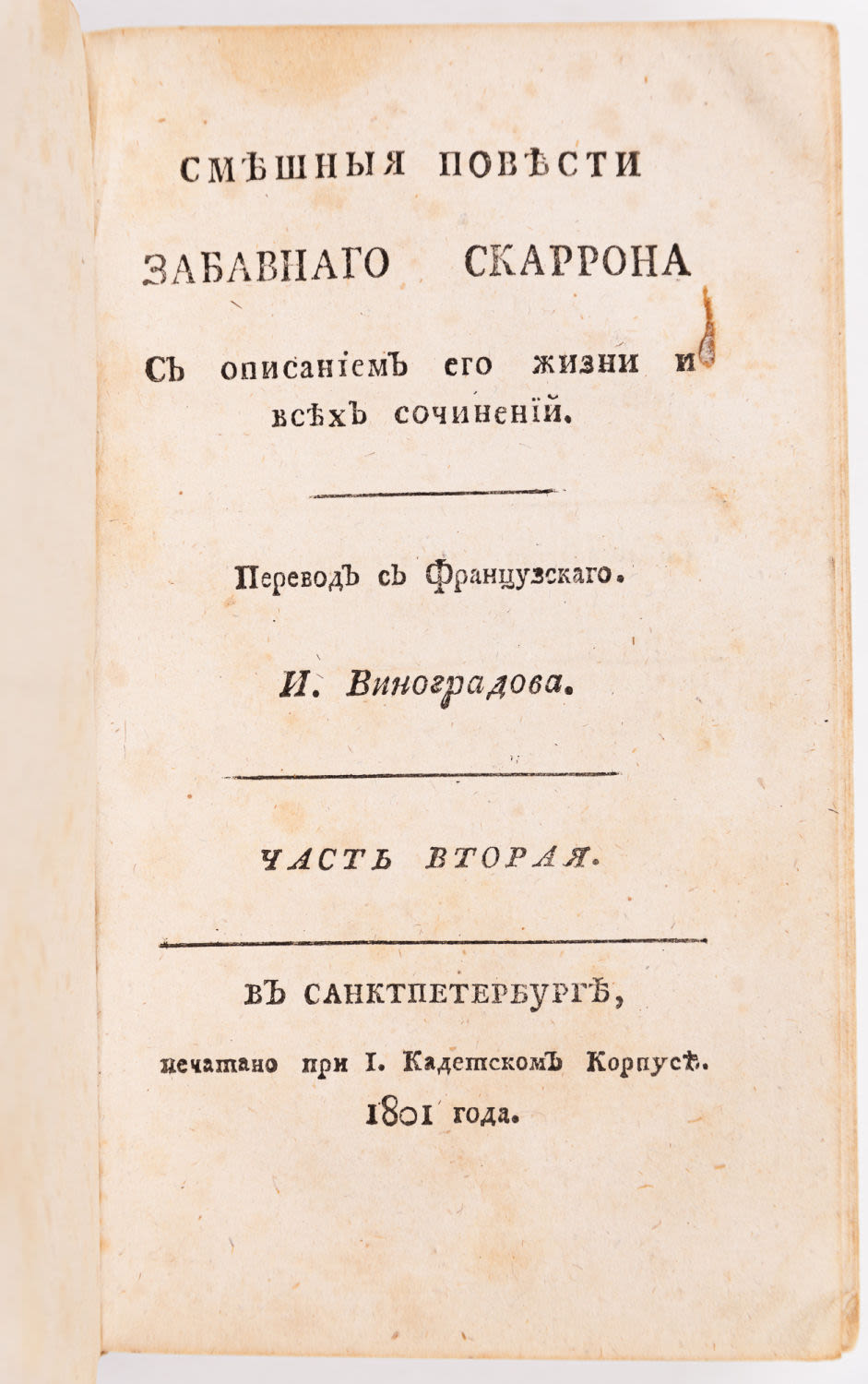 Гравированный фронтиспис с портретом автора (Ч. 1). Две части в одном переплёте.