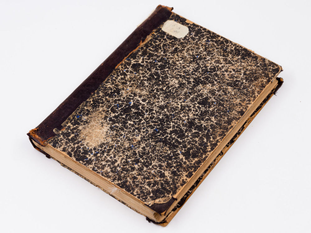 Переплет – владельческий, составной; картон, мраморная бумага, корешок – кожа с тиснением.