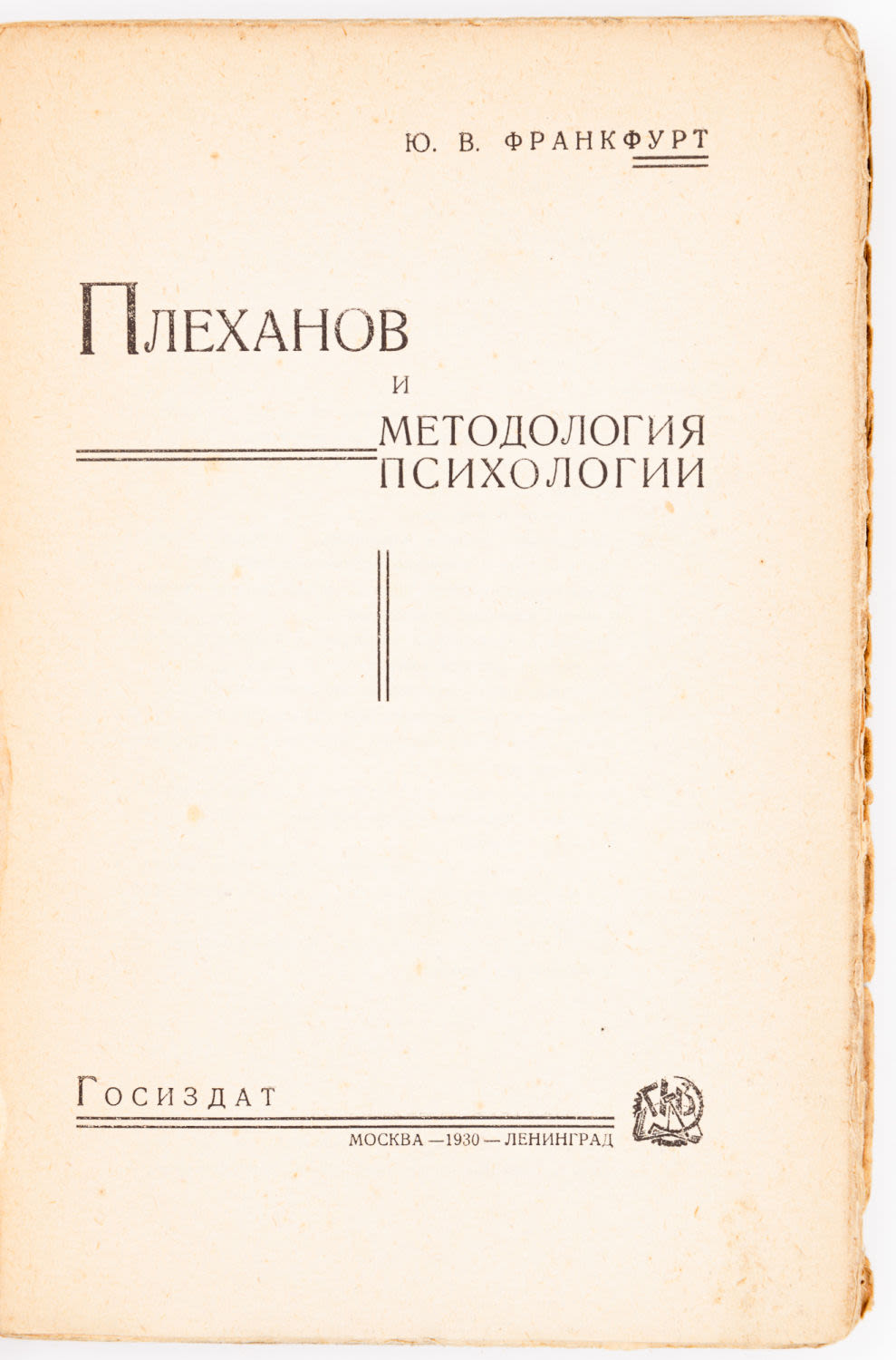 Франкфурт Юрий Владимирович (Юдель Вульфович) (1897–1940?) – один из крупнейших психологов 1920-х годов. Лидер деборинцев (сторонников философской теории А.М. Деборина) в психологии. Автор большого количества работ. После поражения деборинцев был подвергнут травле в печати и перестал публиковаться. Арестован в 1938, в 1940 освобожден из-под следствия в связи с прекращением дела. В июле 1940 вновь репрессирован.