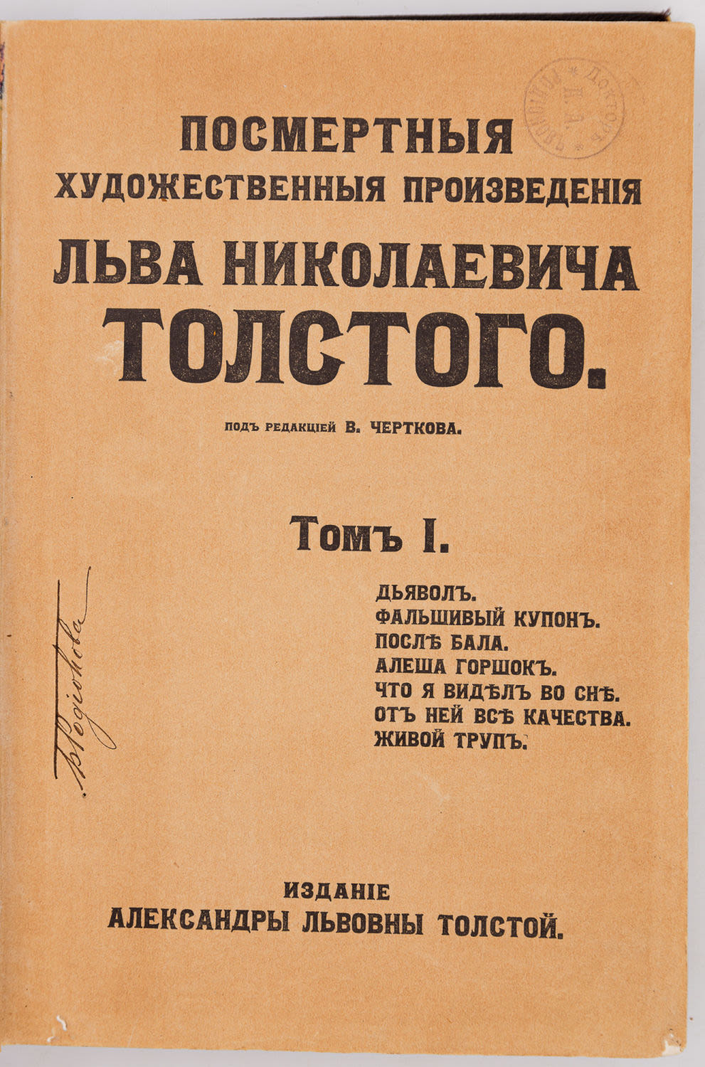 Т. I: Дьявол. Фальшивый купон. После бала. Алеша Горшок. Что я видел во сне. От ней все качества. Живой труп. 1911. – 243, [2] с., [7] л. ил.;