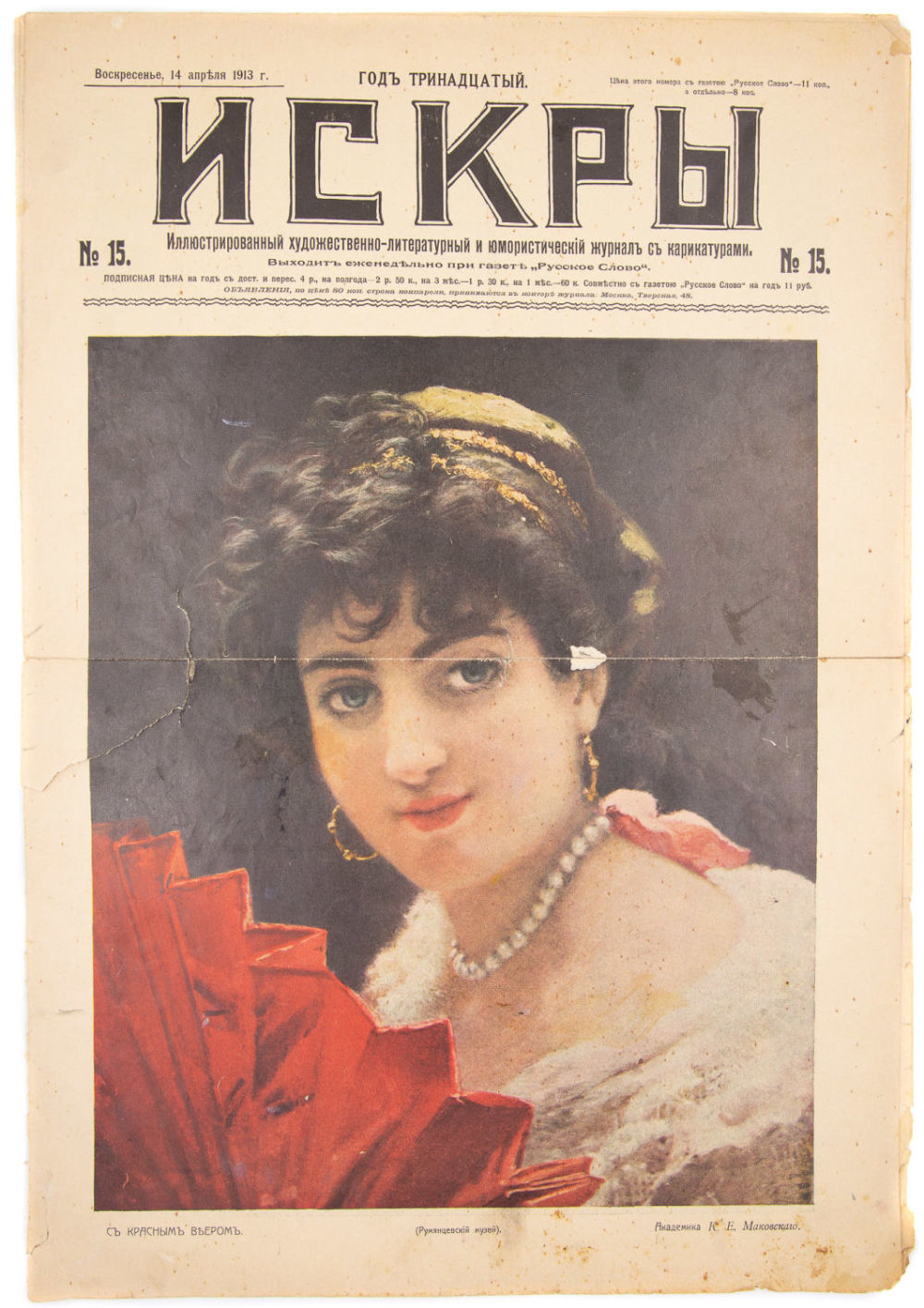 Сохранность – удовлетворительная, незначительное загрязнения обложки, вертикальный сгиб журнала, надрывы всех страниц по месту сгиба, блок распадается на страницы.