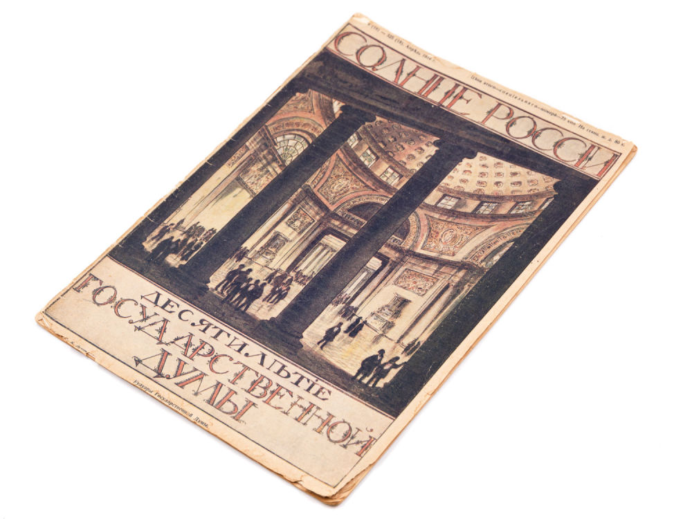 Выпуск полностью посвящен десятилетию Государственной думы, содержит редкий лист-вложение с изображением Первой сессии Государственной думы.