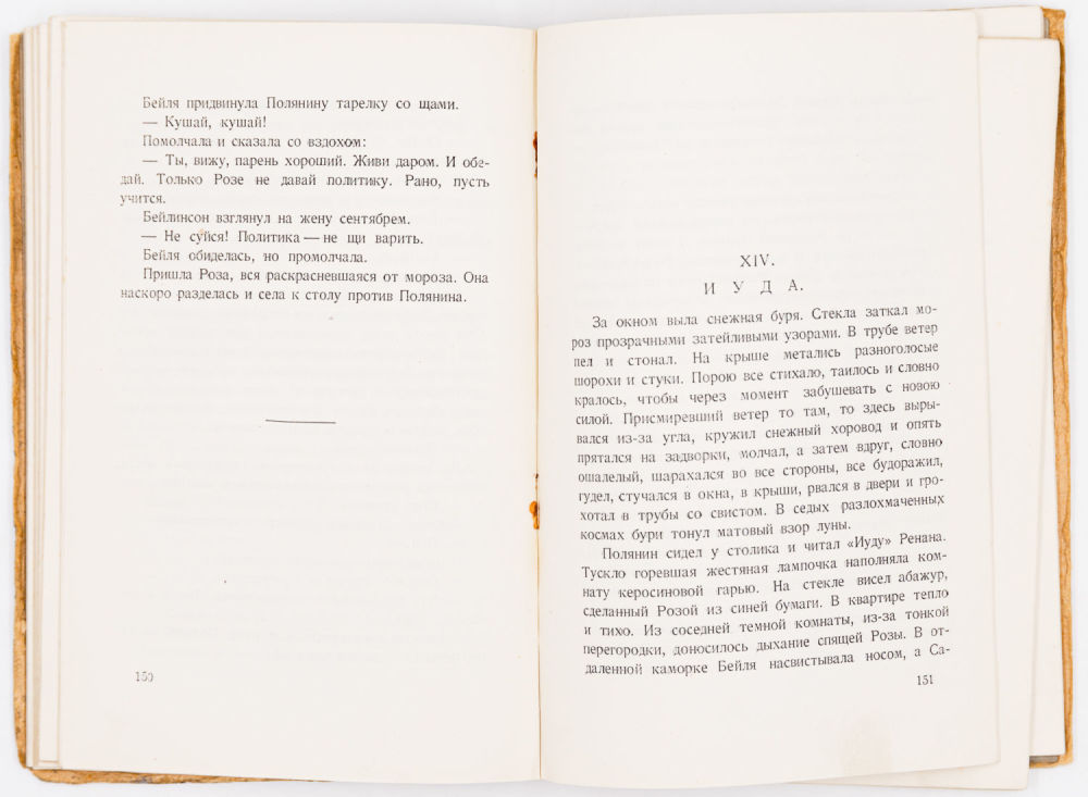Сохранность – хорошая, потёртости и загрязнения переплёта, штампы и пометы букин. магазинов на нахзаце, грубая реставрация корешка, следы сгибов уголка верхней крышки, трещины в блоке, С. 161-192 частично отделены от блока.