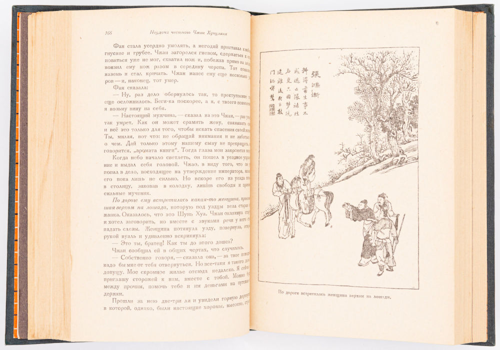 Из серии новелл «Ляо-Чжай Чжи-и». Перевод, предисловие и комментарии академика В.М. Алексеева. М.; Л.: Изд-во Акад. наук СССР, 1937. – 494, [1] с.: ил., [2] л. ил.; 22х15 см.