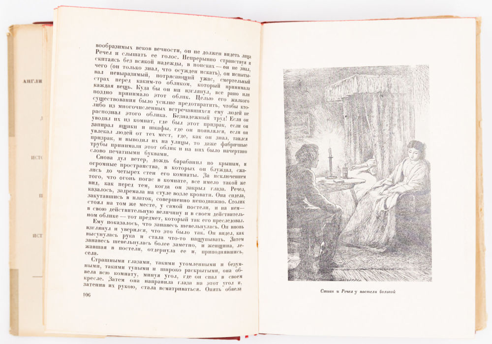 Сохранность – хорошая, блок слегка расшатан; временные пятна и надрывы суперобложки, штампы и пометы букинистических магазинов на нахзаце, пятно от влаги на нижней крышке, трещины форзацев вдоль корешка, частично отделен от блока лист с иллюстрацией.