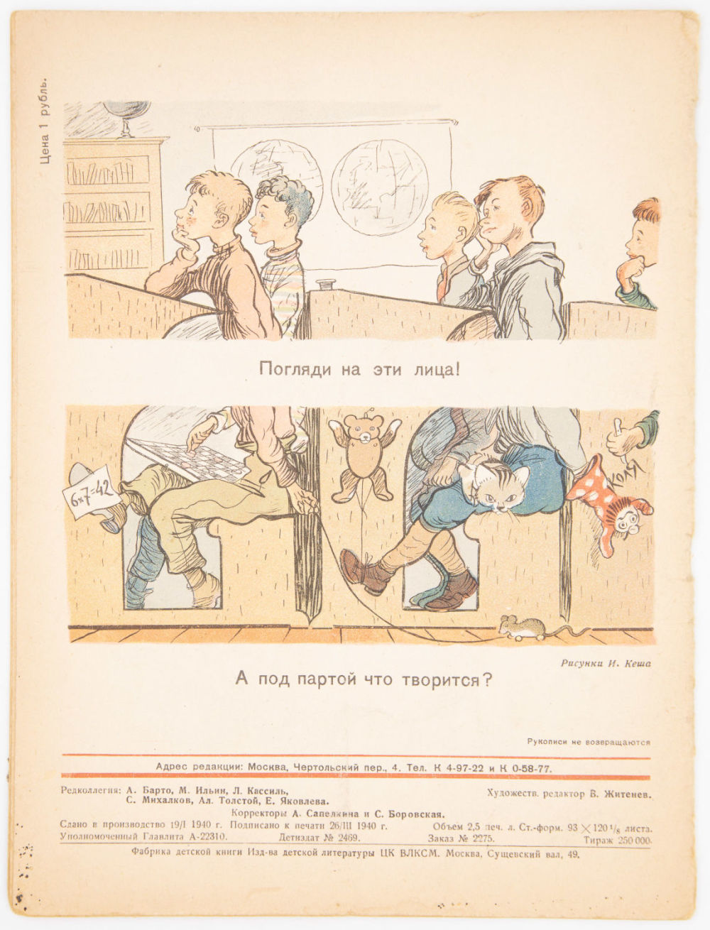 Выпуск относится к периоду, когда главным редактором журнал был известный советский писатель Л.А. Кассиль.