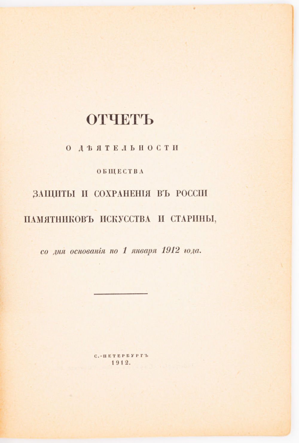 2) Отчет о деятельности Общества защиты и сохранения в России памятников искусства и старины, со дня основания по 1 января 1912 года. СПб.: Сириус, 1912. – 35, [3] с.; 21,5х15,5 см.