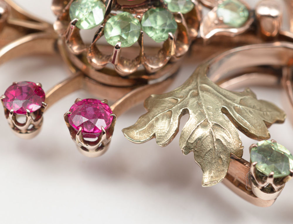 Россия, Москва. Мастер-монограммист – «ИГ». Золото, рубины, демантоиды.