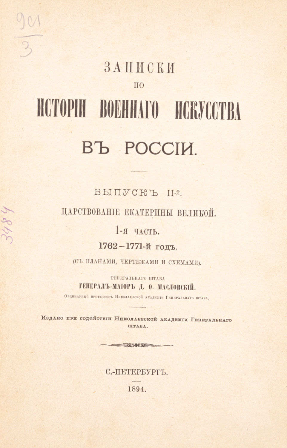 СПб.: Тип. В. Безобразова и Комп., 1894. – VIII, 240, [2], 108, 36 с., [3] л. схем.; 25х17,5 см.