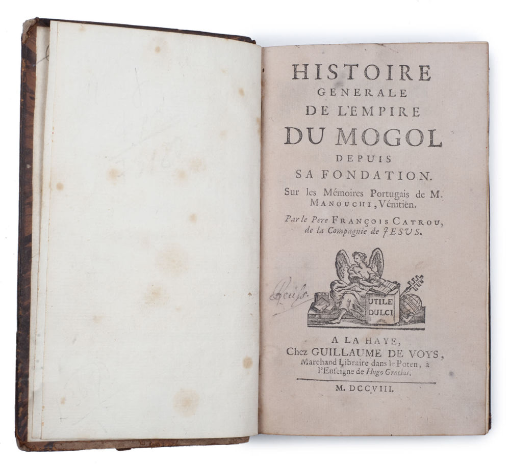 1) Всеобщая история Могольской империи с момента основания. Histoire generale l’Empire du Mogol depuis sa fondation. Sur les mémoires Portug. de M. Manouchi, Vénitien et par le pere François Catrou, dela compagne de Jesus. Гаага: Chez Guillaume de Voys, 1708. – 24, 380 с., [1] л. грав.; 16×9 см.