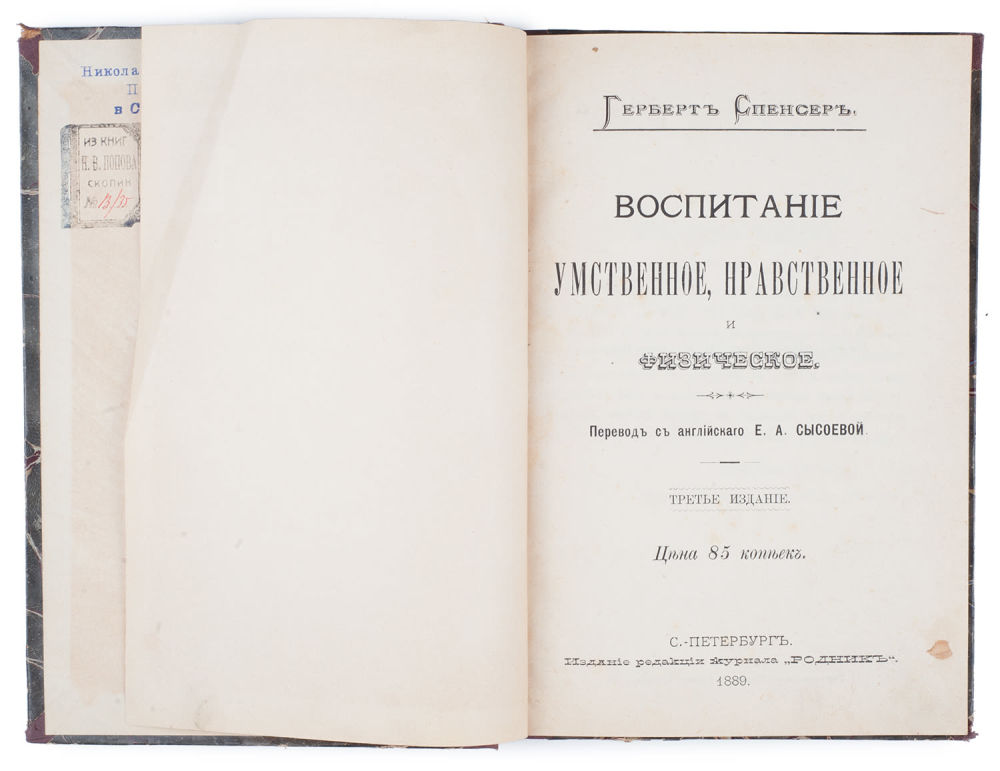 Штемпельные экслибрисы на форзаце: «Николай Васильевич Попов в Скопине».