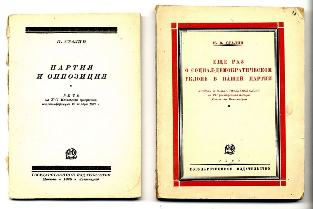 1) Сталин И.В. Партия и оппозиция: Речь на XVI Московской губернской партконференции 23 ноября 1927 г. М.; Л.: Государственное изд-во, 1928. – 26, [6] с.; 16х12 см.
