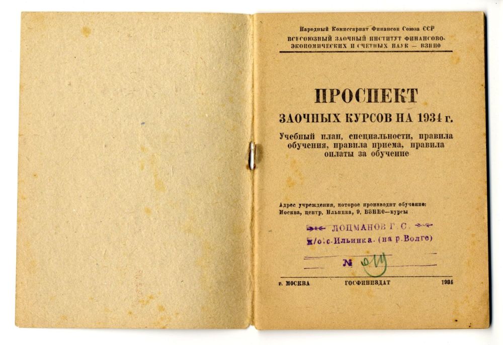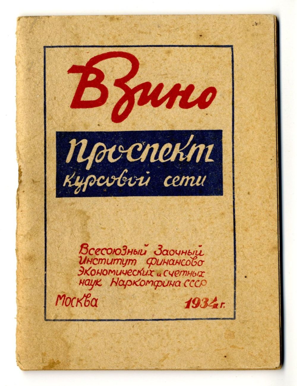 Учебный план, специальности, правила обучения, правила приема, правила оплаты за обучение. М.: Госфиниздат, 1934. — 32 с.; 17х12 см.