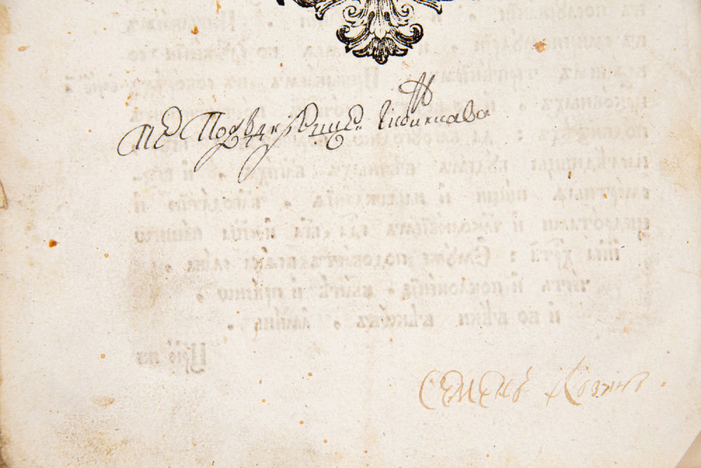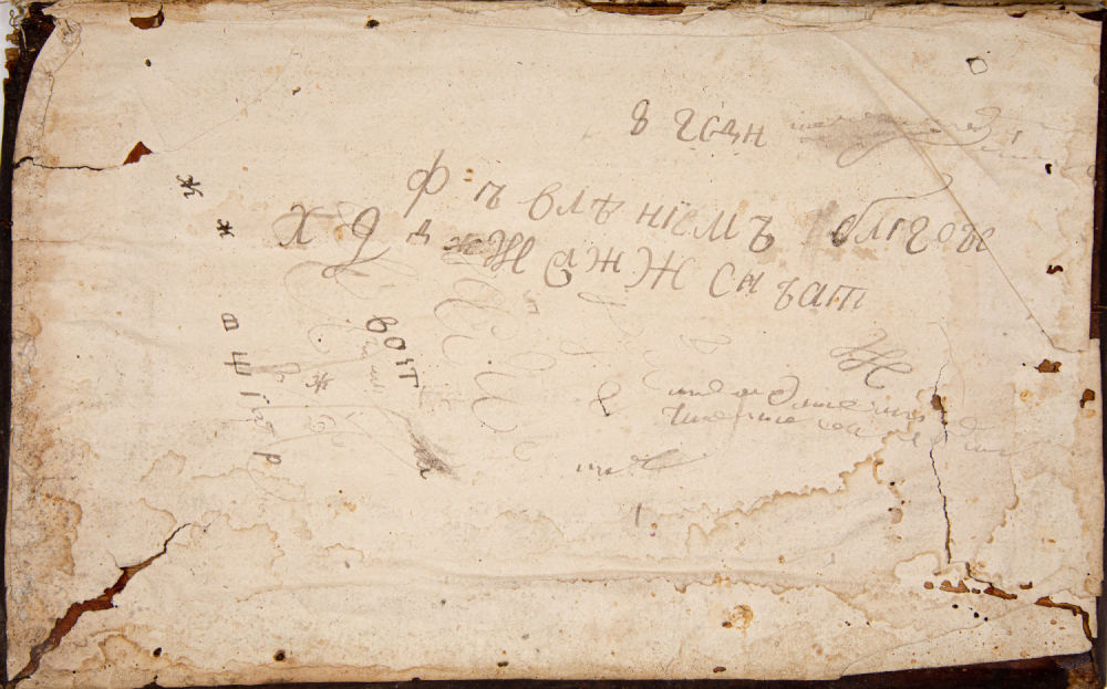 Вкладная запись с Л. 2 и далее на нижних полях блока: «Сие Евангелие Учительное Воскресное Коломенскаго Уезда Села Полубояринова церкви Смоленской Пречистой Богородицы Одигитрии куплена на шестнадцати [нрзб.] деньги [нрзб.] дано два рубля сорок копеек [нрзб.]. Учительное Сие Евангелие Воскресное [нрзб.] церкви Села дьякон Яков Василиев тысяща семьсот шедесятаго года мца Генваря второй [нрзб.] на десять день».