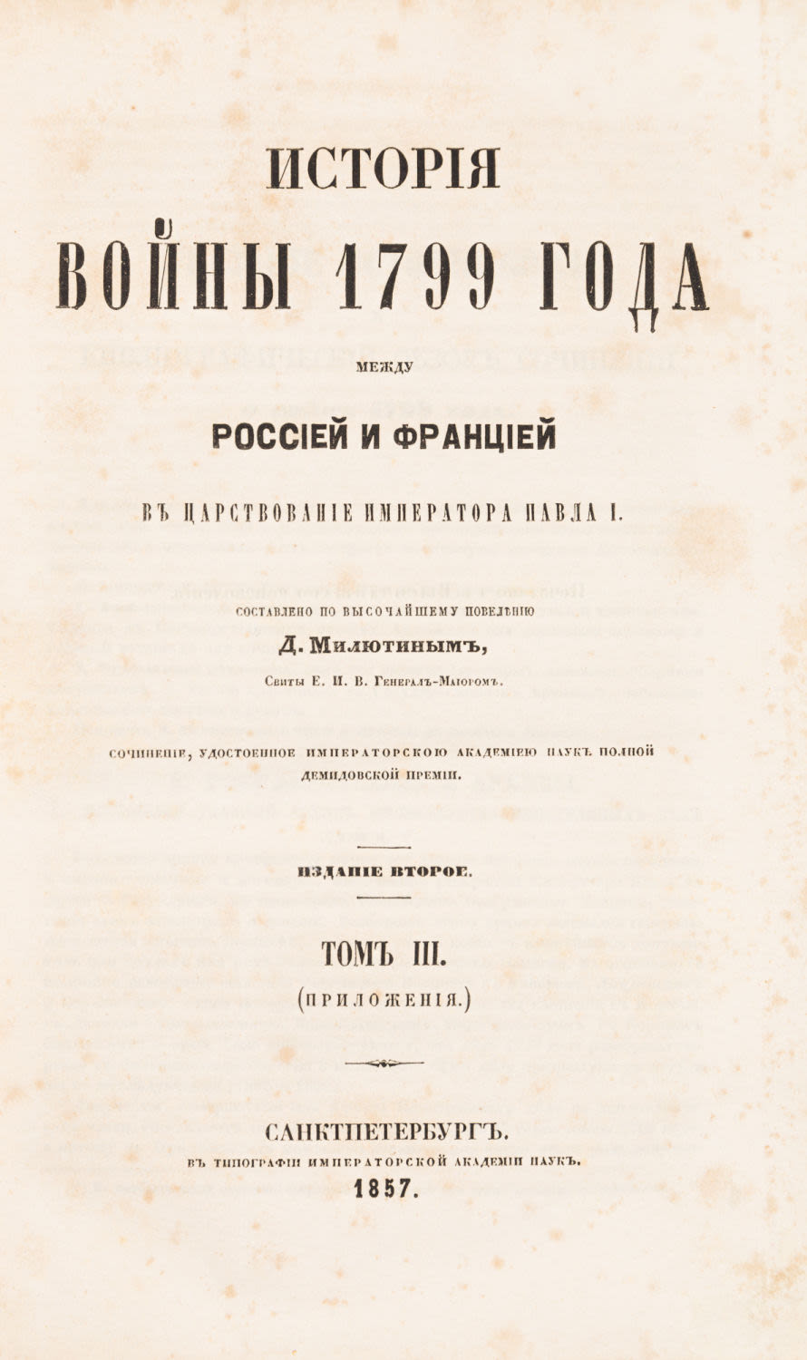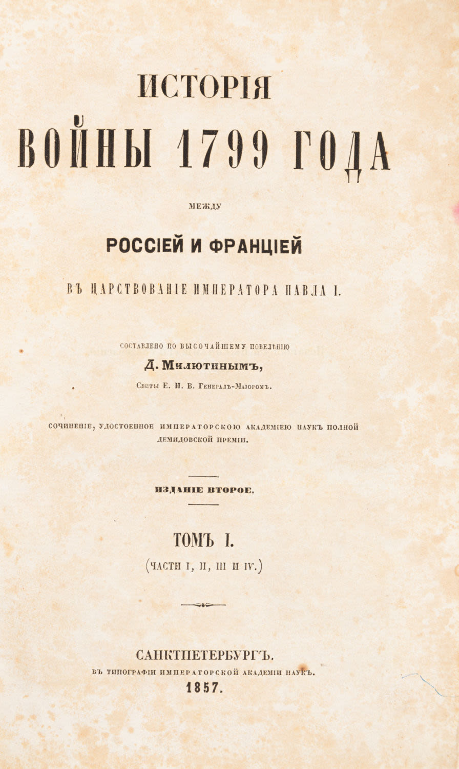 Издание, в котором подробно описаны все обстоятельства военных и дипломатических действий, произошедших в период борьбы с революционной Францией, а также Итальянский и Швейцарский поход А.В. Суворова.