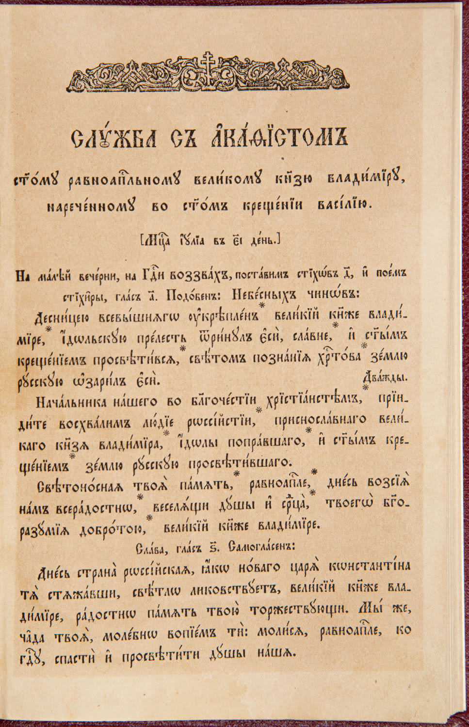 С присовокуплением жития его и нотных переложений сея службы киевского роспева. Ко дню девятисотлетия крещения Руси [988–1888]. М.: В Синодальной типографии, 1888. — 95 с., [1] л. ил.; 21х15 см.