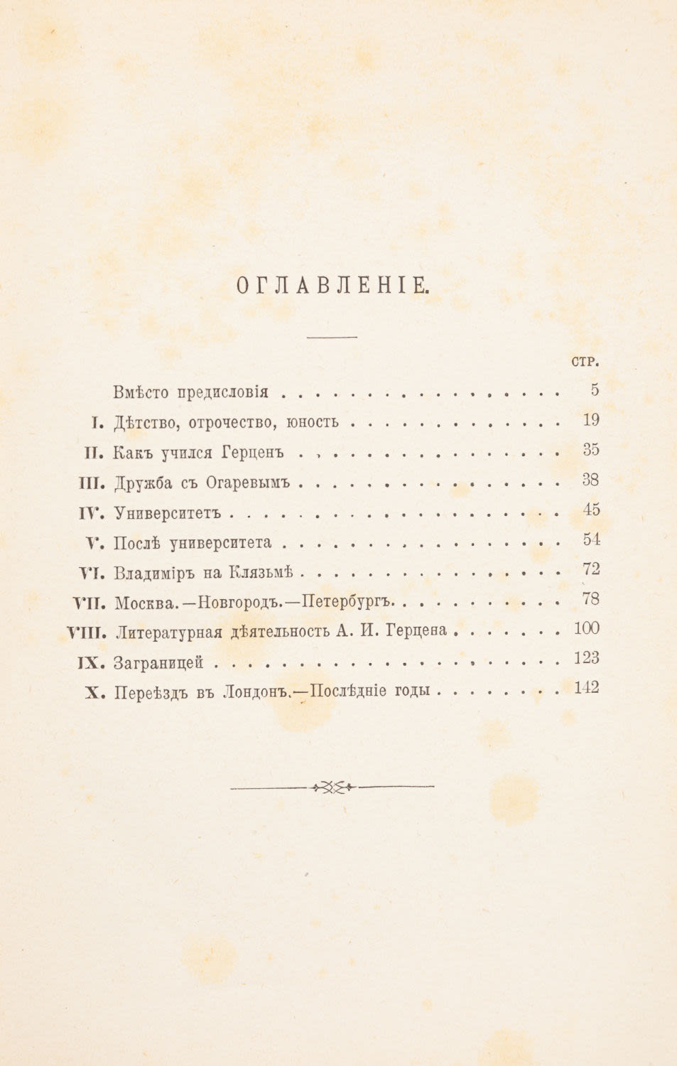 Сохранность – хорошая, потёртости переплёта, утрата небольших фрагментов кожи корешка, редкие следы от перелистывания, номера на форзаце, «лисьи» пятна, небольшие надрывы тит. л. и св. л. нахзаца.