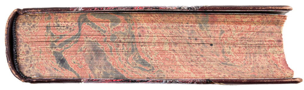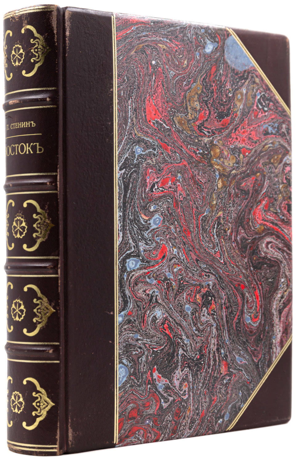 Переплет – владельческий; картон, мраморная бумага, корешок – кожа с золотым тиснением, разделен бинтами на пять сегментов, мраморированный верхний обрез, форзацы – мраморированные.