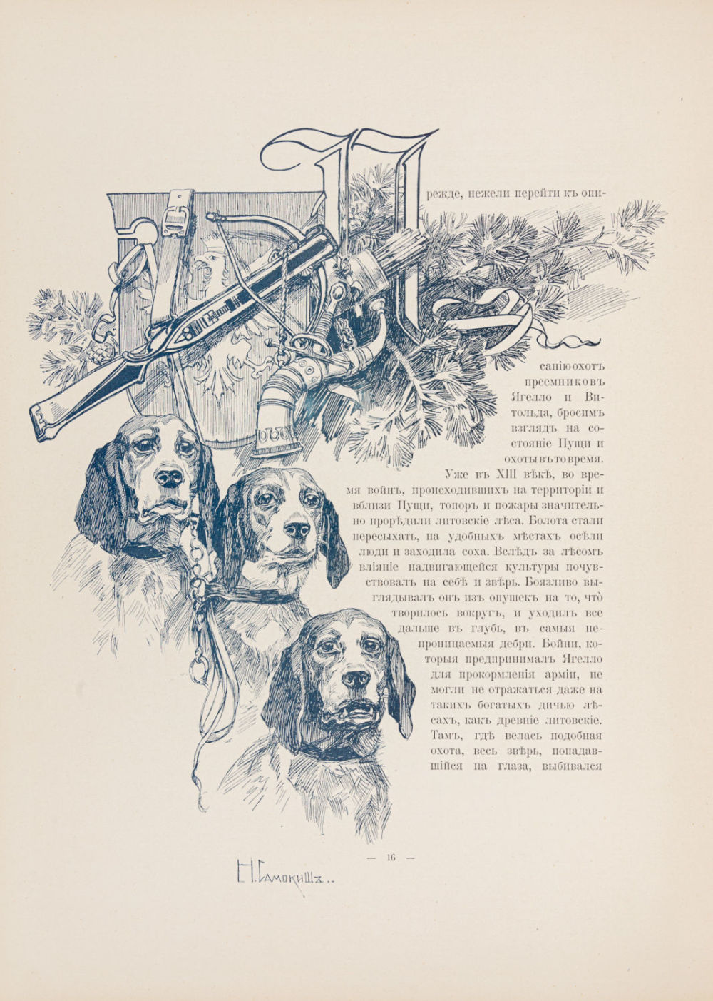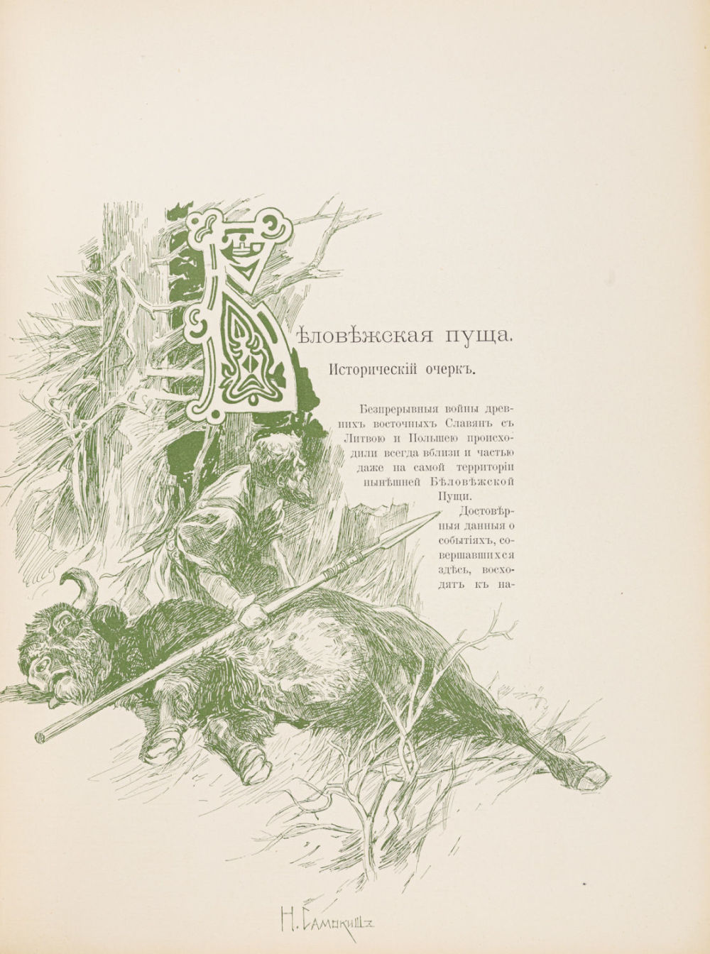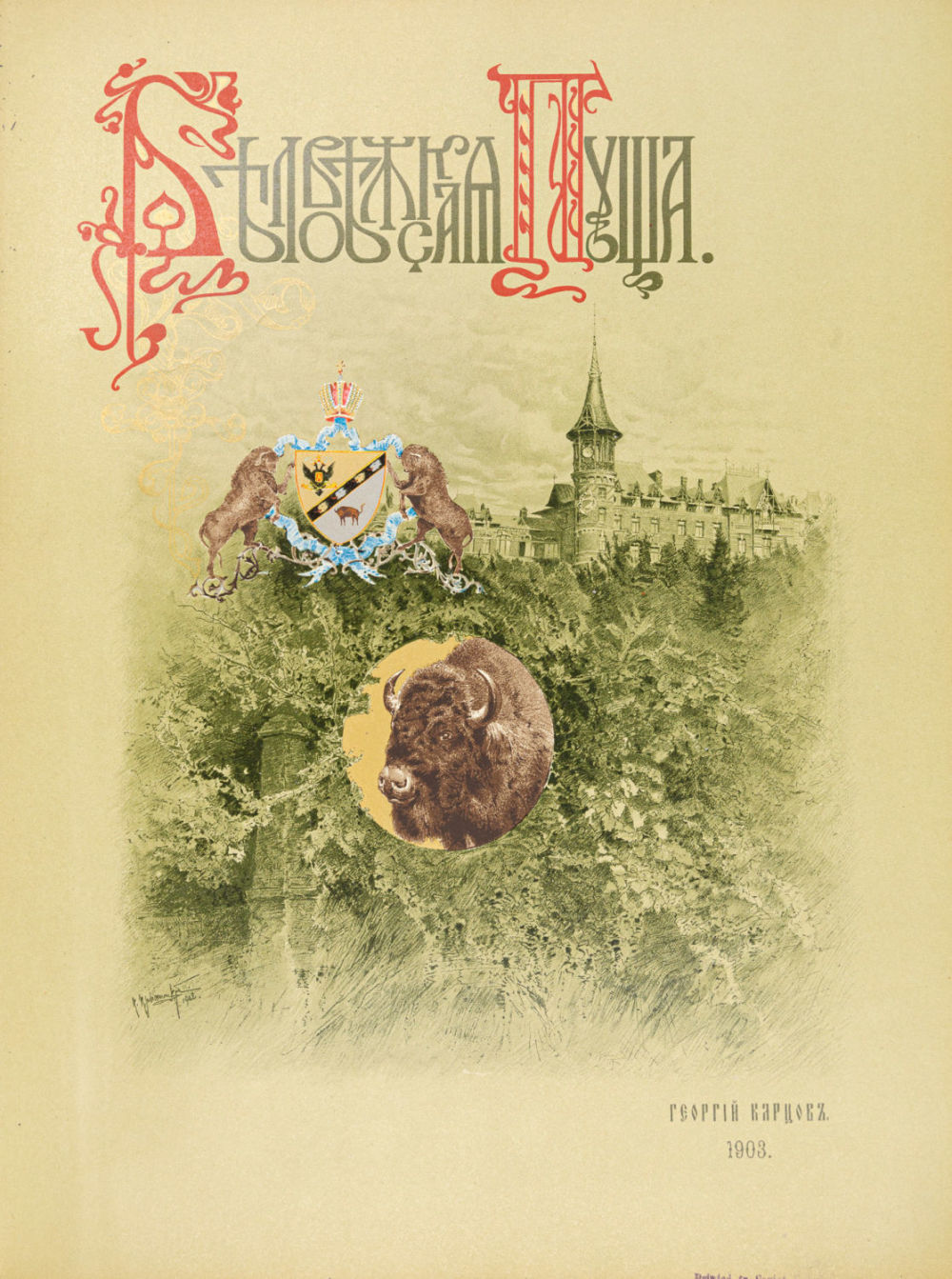 Ее исторический очерк, современное охотничье хозяйство и высочайшие охоты в Пуще. СПб.: Артистич. заведение А.Ф. Маркса, 1903. – XVI, 414 с.: ил., [23] л. ил.; 35×27 см.
